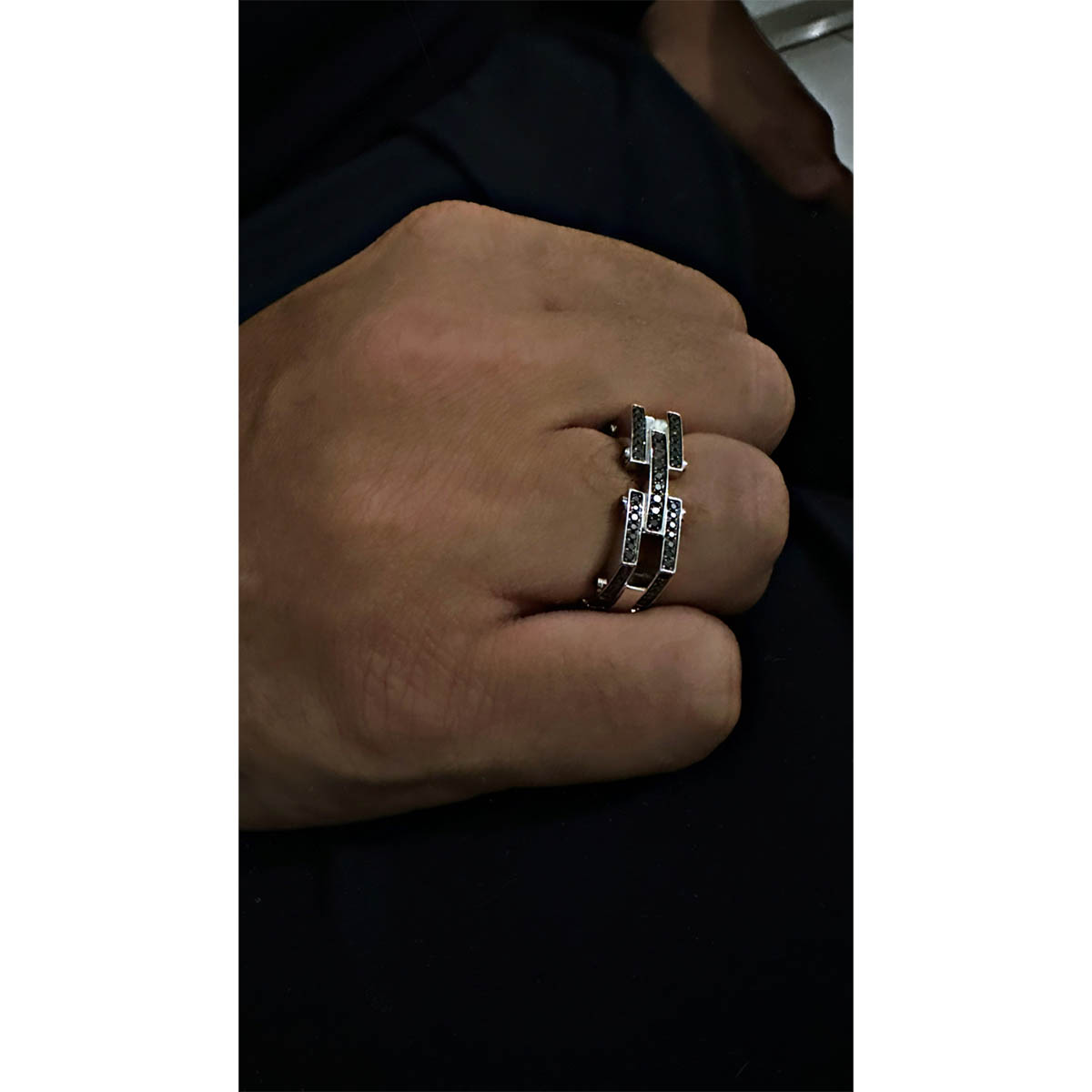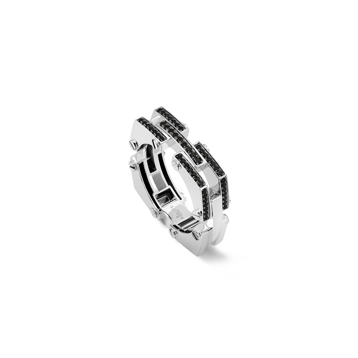 Les bijoux Rainbow K se distinguent par leur modernité et leur originalité, c’est pourquoi leurs pièces sont particulièrement géométriques et sculpturales. La bague Chrome structurera et terminera votre look d’une touche rock.