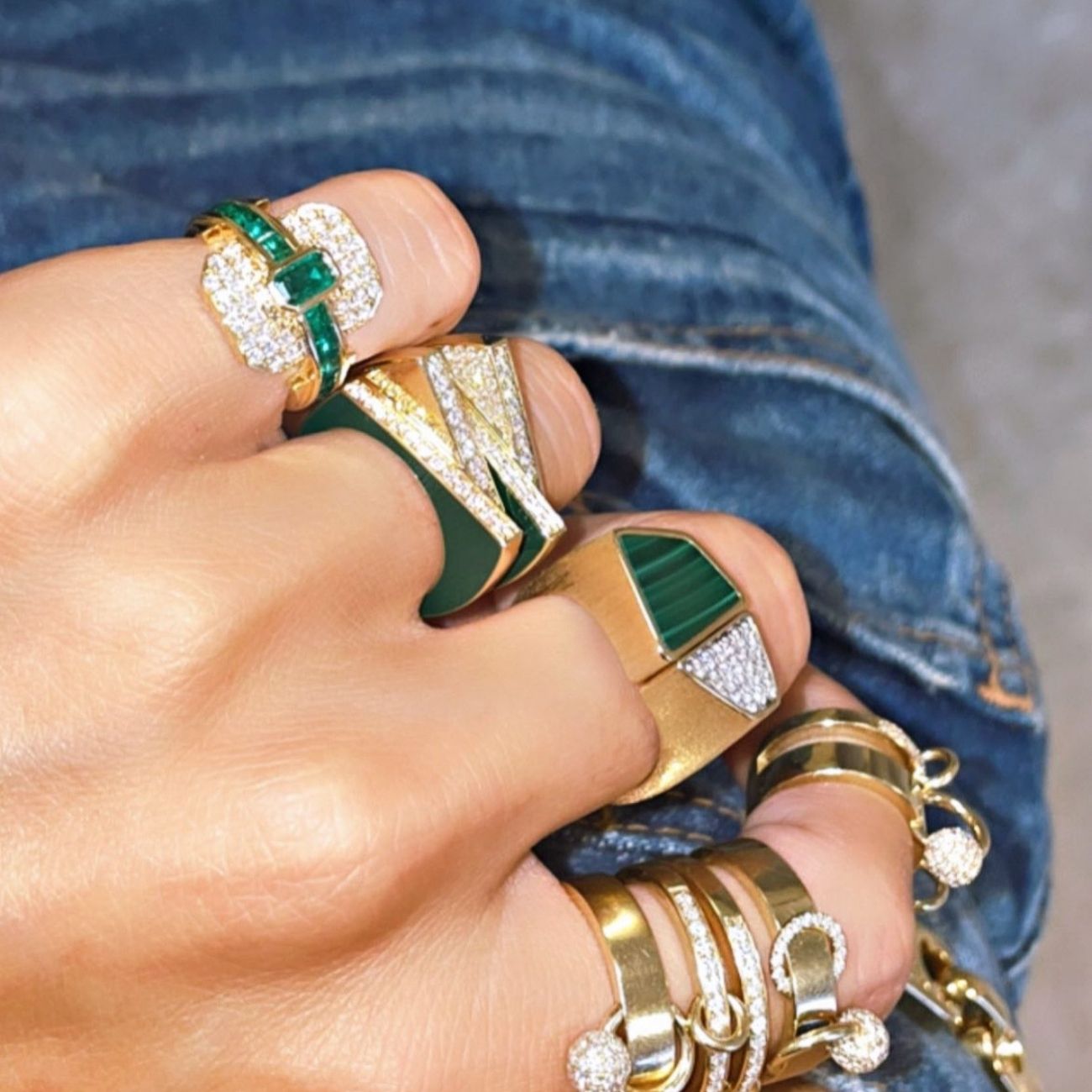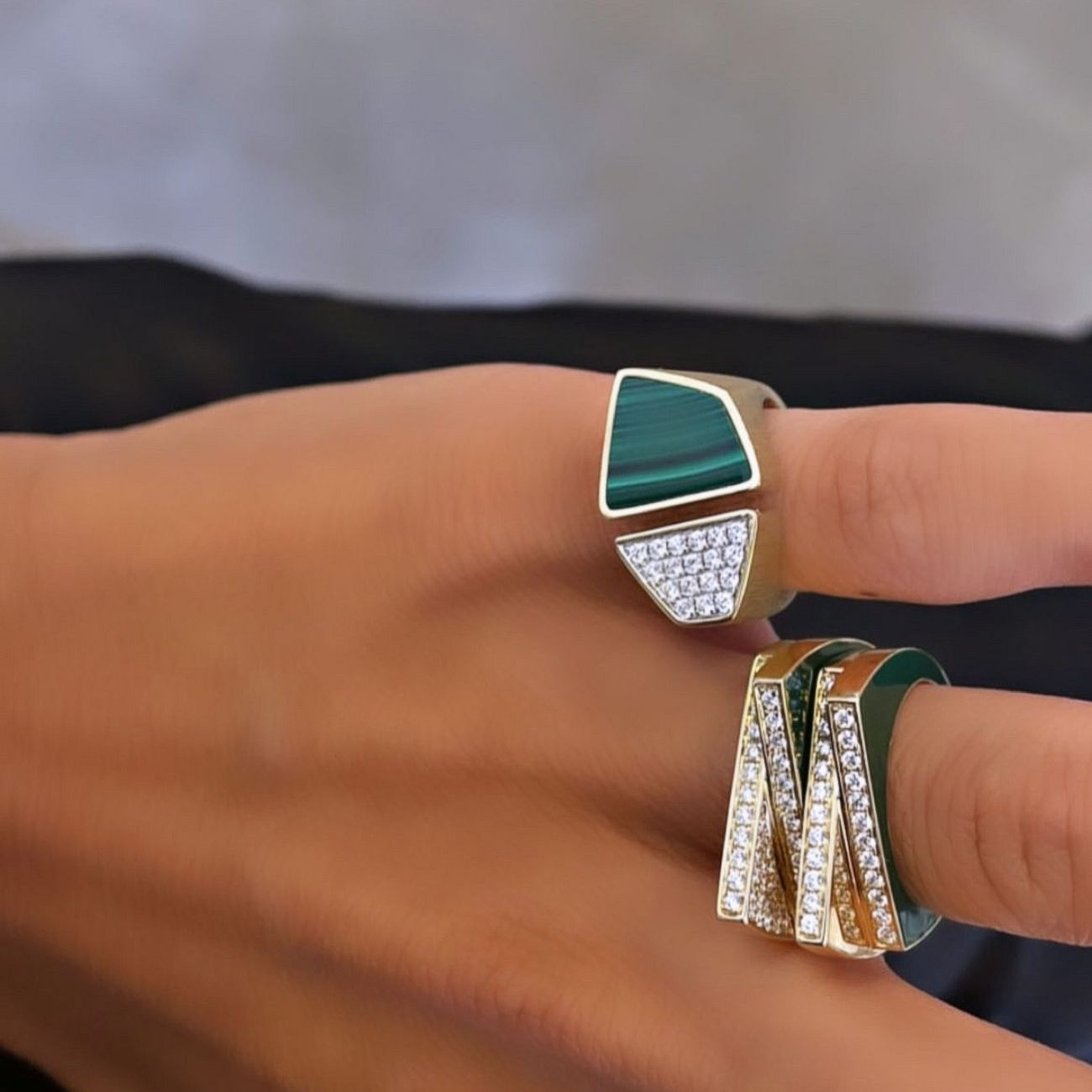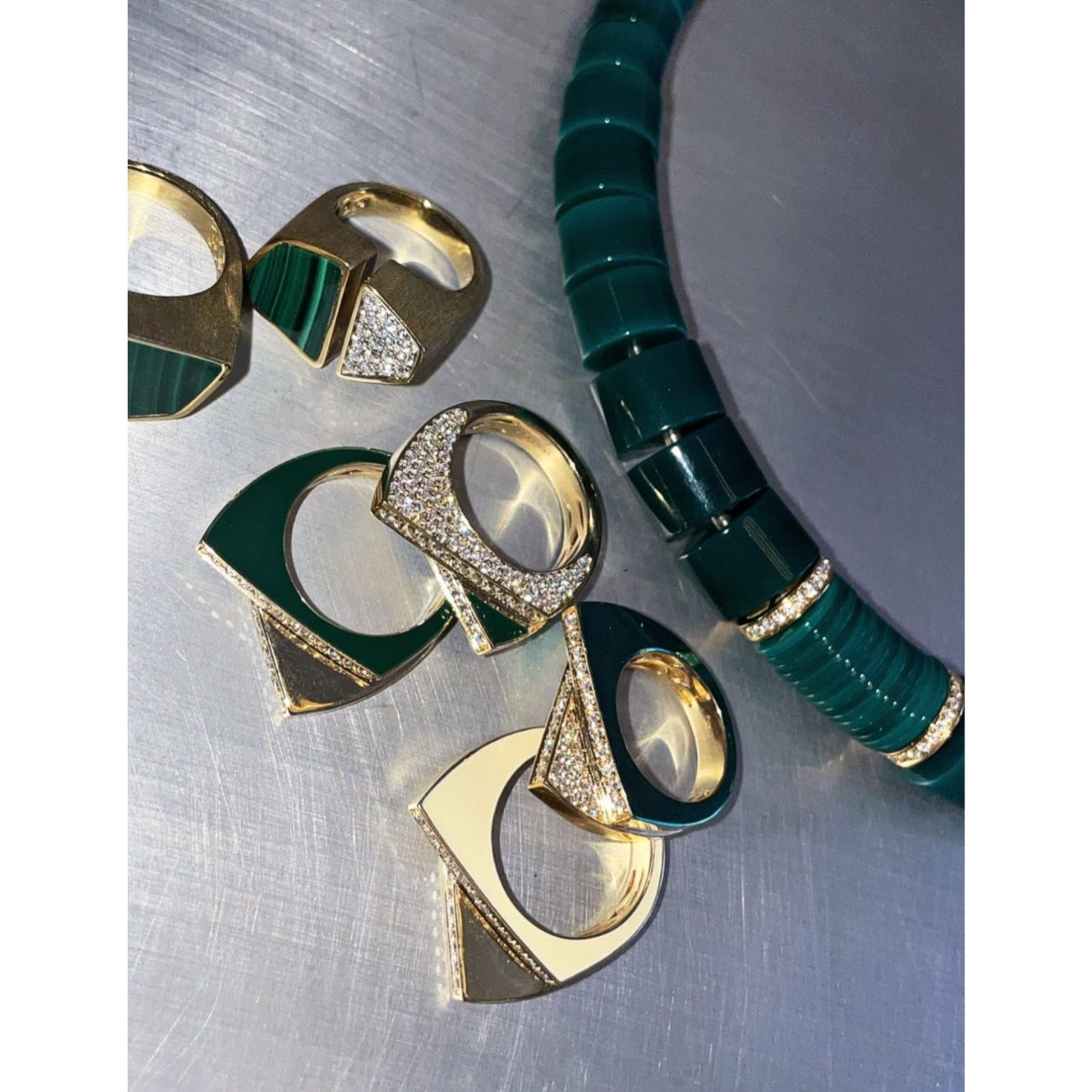 BAGUE HANDCUFF DIAMANTS ÉMAIL VERT FONCÉ