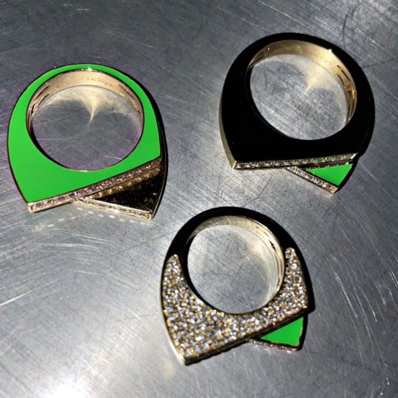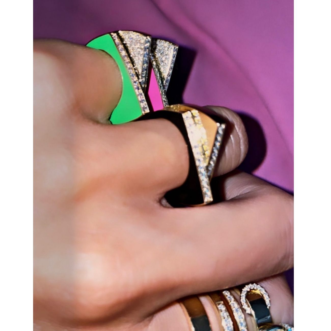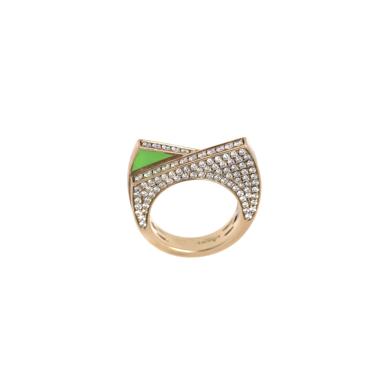 BAGUE HANDCUFF DIAMANTS ÉMAIL VERT