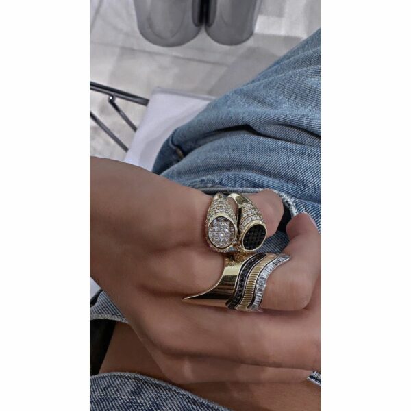 La bague Lady pour toutes les ladies, classiques, rock, sophistiquées… Vous êtes cette femme qui peut ne porter que cette pièce et être magnifique. Elle représente tous les codes de la maison RK, à la fois haute joaillerie en passant par le diamant tout en restant rétro dans sa hauteur.
