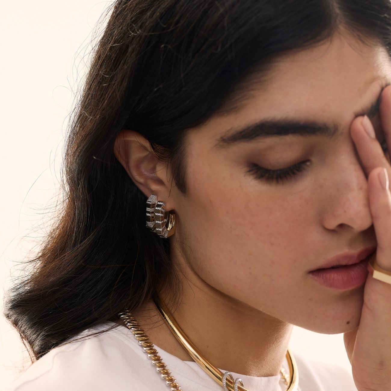 La boucle d’oreille ligne pavée Bold est une pièce unique qui allie élégance et audace. Avec sa menotte géométrique inspirée de l’architecture moderne, chaque détail est sublimé par des diamants étincelants. Ce bijou incarne le raffinement et la créativité, parfait pour celles qui osent se démarquer.