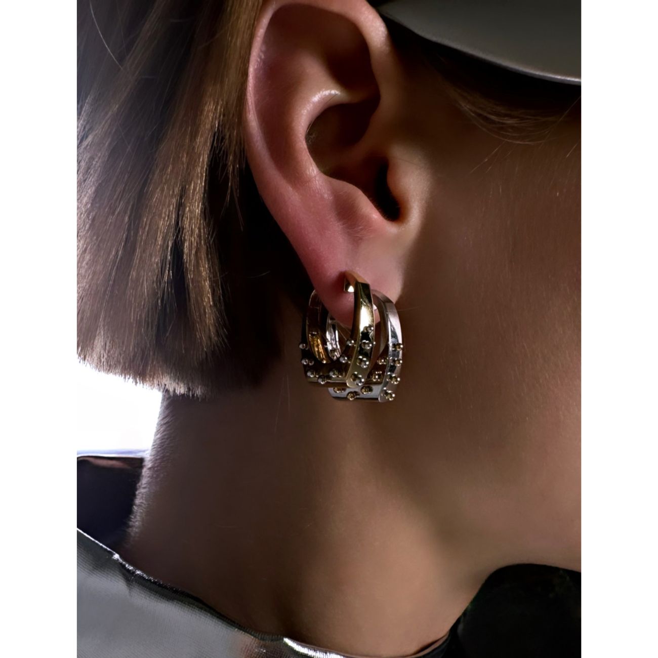 Les bijoux Rainbow K se distinguent par une influence Art Déco, c’est pourquoi ses pièces sont particulièrement glamour et sculpturales. La boucle d’oreille Grace clou est en or brillant 14 carats et présente une forme originale avec son aspect bicolore. Elle s’accorde parfaitement avec la célèbre boucle d’oreille Grace avec des diamants.