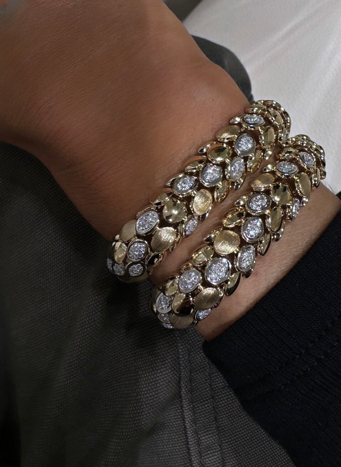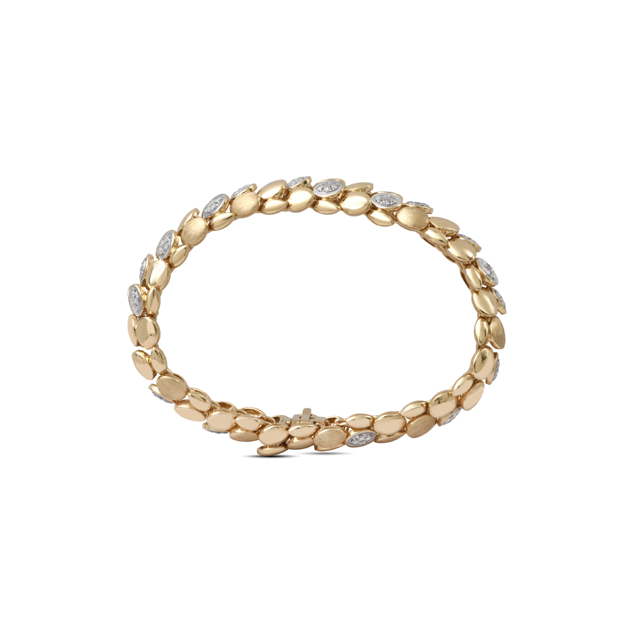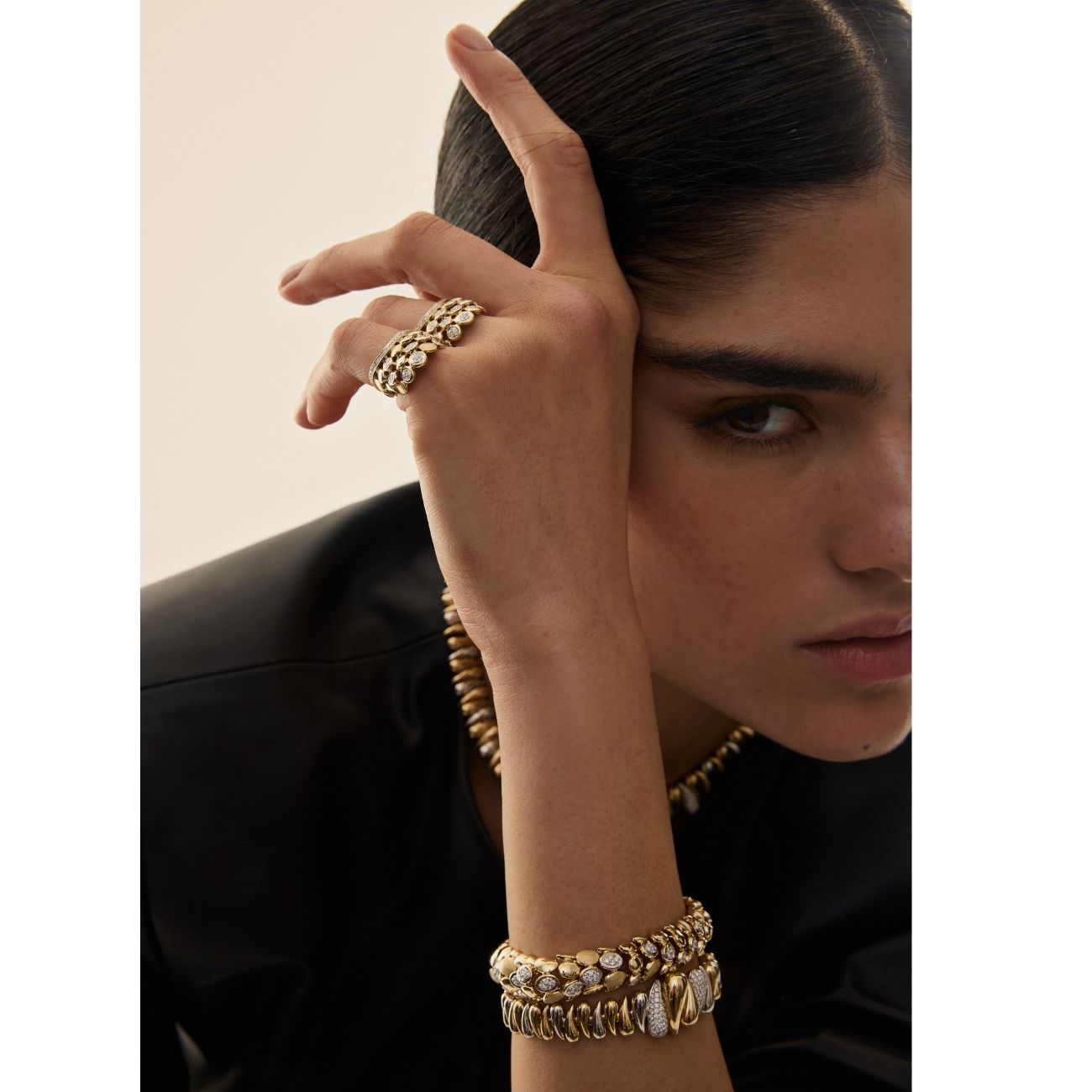 Le bracelet Blossom aux délicates pétales soigneusement articulées pour un mouvement fluide et élégant, où l’or brossé se marie à l’or lisse pour créer une parfaite harmonie. Laissez briller votre éclat intérieur avec cette pièce d’exception.