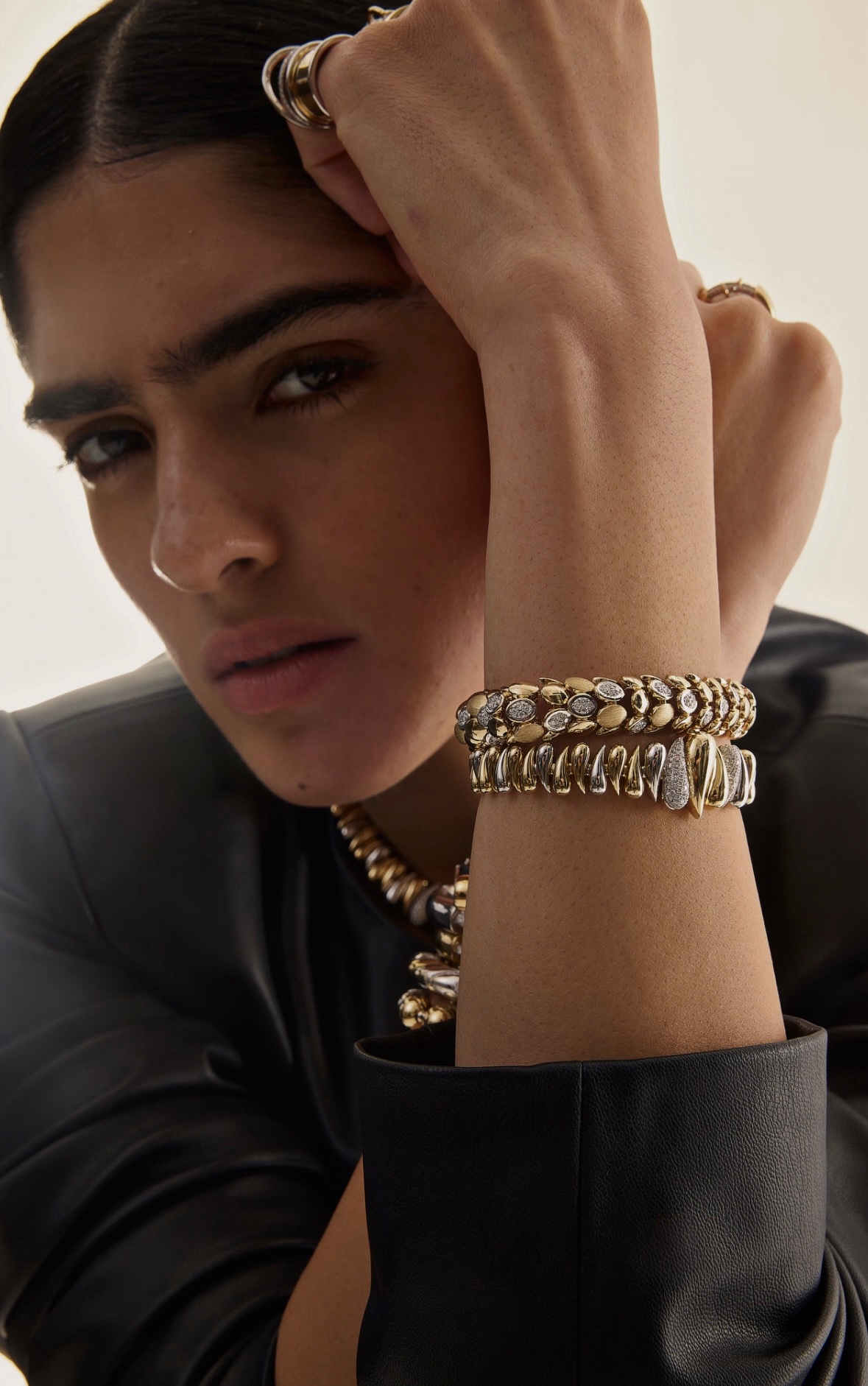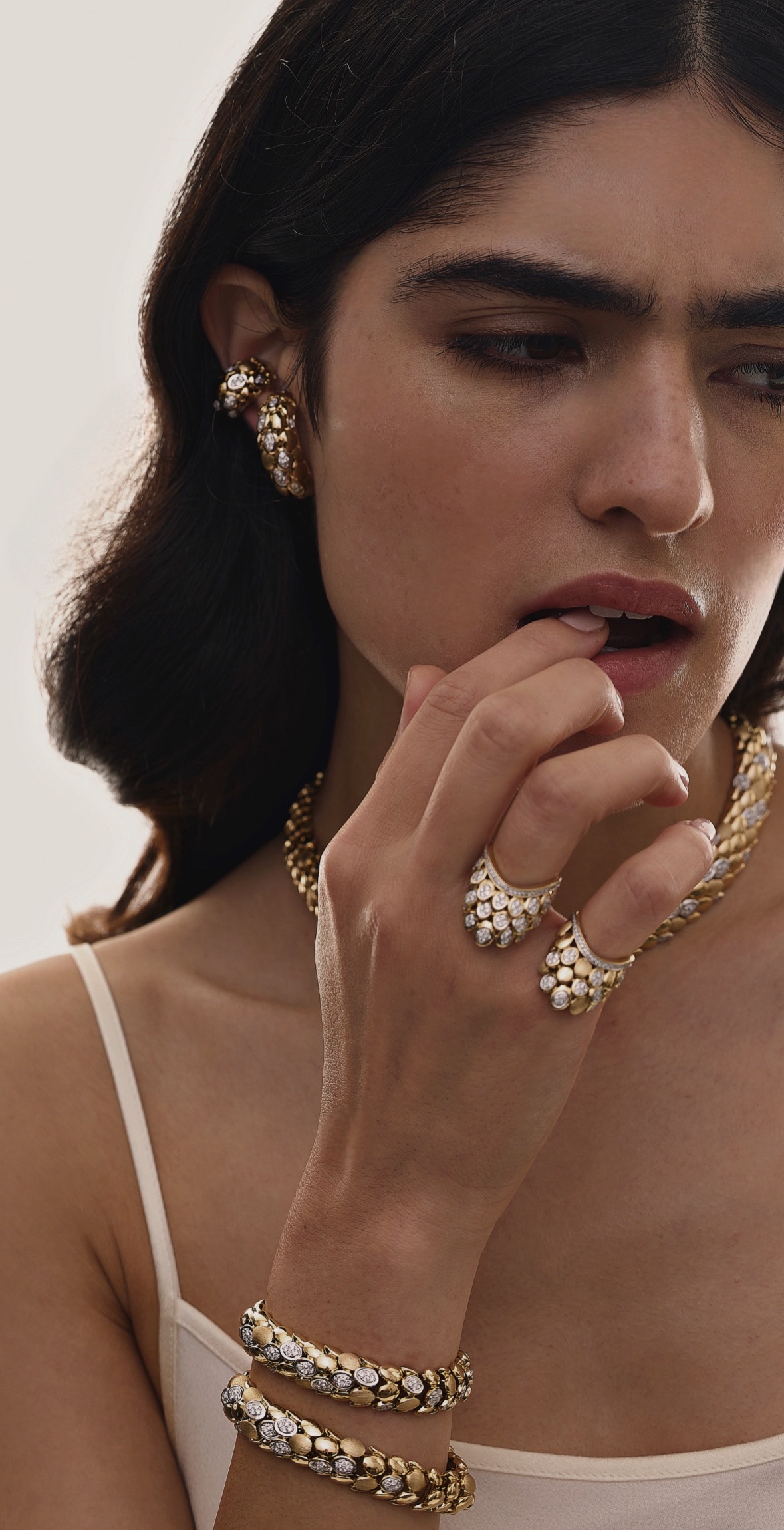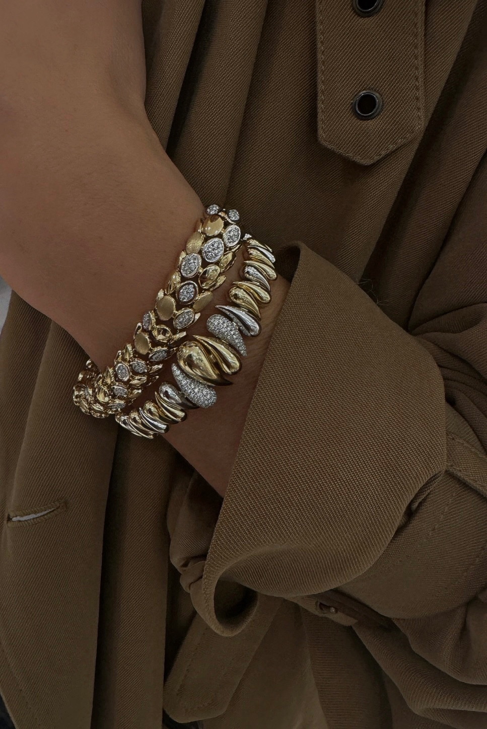 Le bracelet Blossom aux délicates pétales soigneusement articulées pour un mouvement fluide et élégant, où l’or brossé se marie à l’or lisse pour créer une parfaite harmonie. Laissez briller votre éclat intérieur avec cette pièce d’exception.