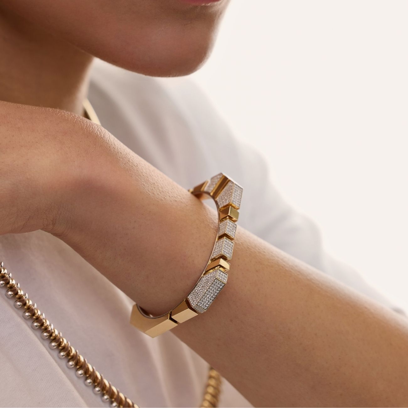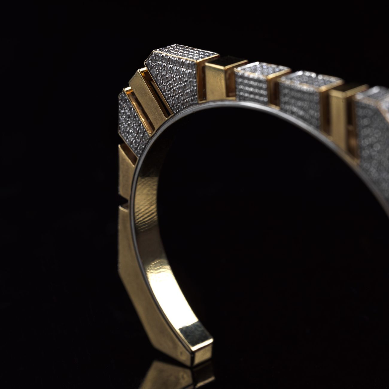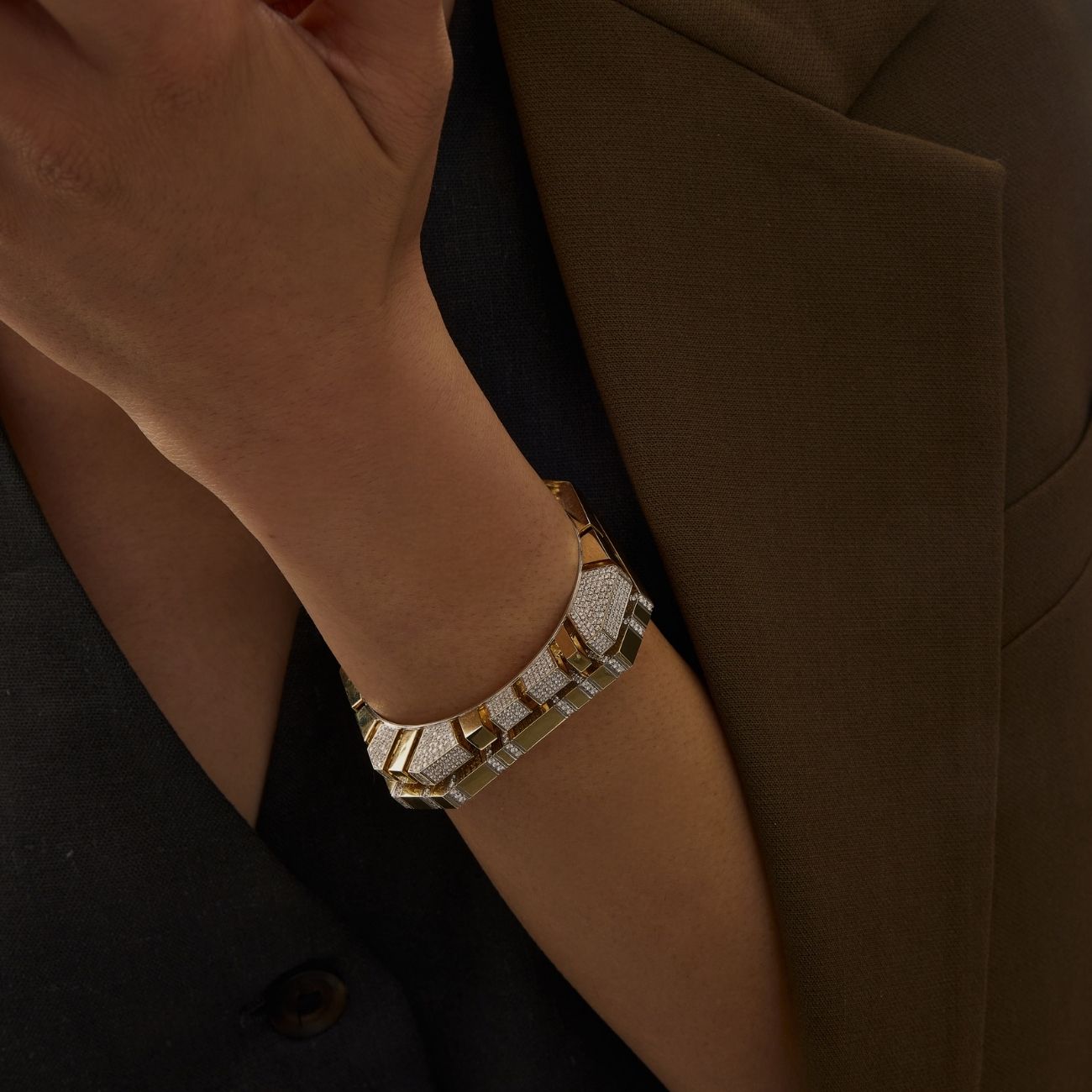 Le bracelet Bold pavé est une pièce unique qui allie élégance et audace. Avec sa menotte géométrique inspirée de l’architecture moderne, chaque détail est sublimé par ces multiples diamants étincelants. Ce bijou incarne le raffinement et la créativité, parfait pour celles qui osent se démarquer.