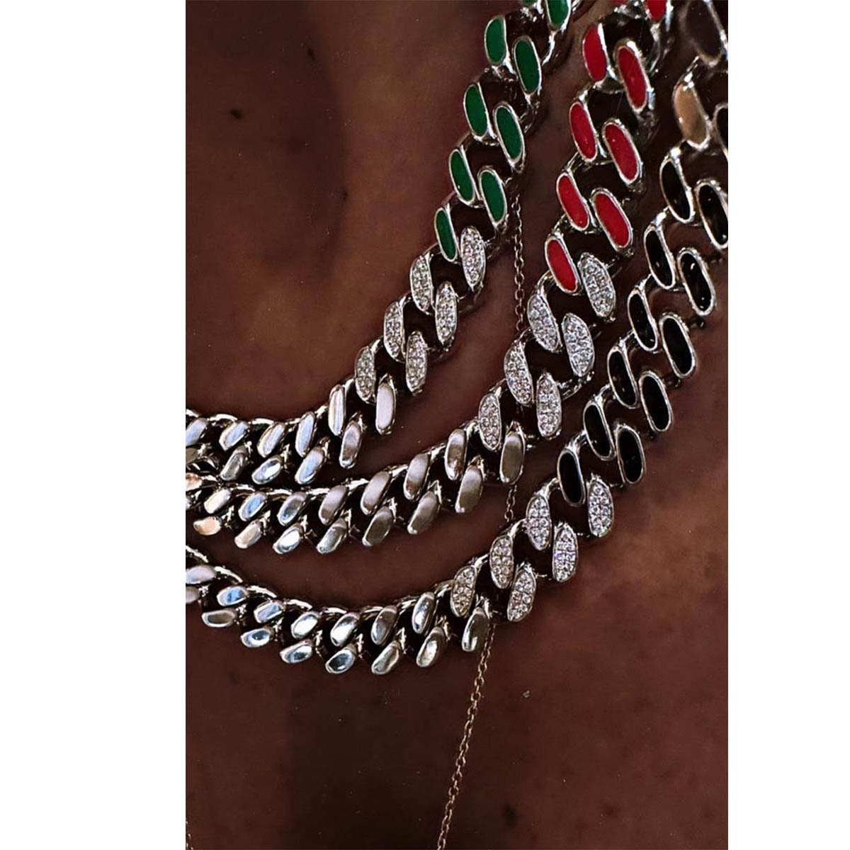 Le collier Link est une pièce de haute joaillerie très stylée avec une touche de couleur. Mélangez et assortissez différentes couleurs pour obtenir le style RK.