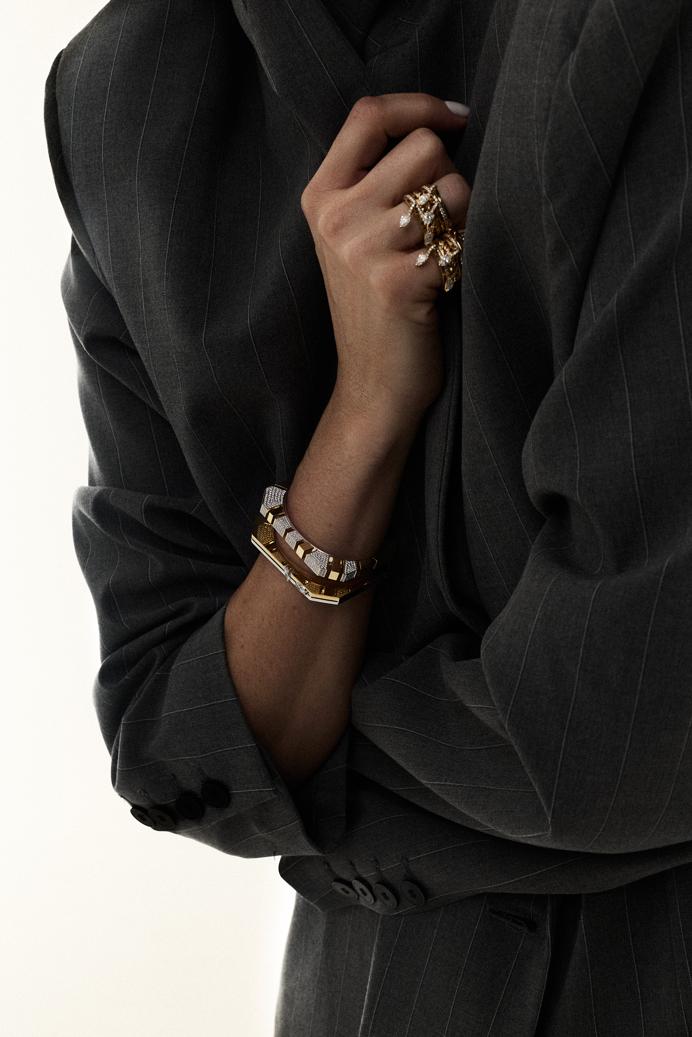 The Bold full pave bangle is a unique piece that combines elegance and boldness. With its geometric handcuff inspired by modern architecture, each detail is enhanced by sparkling diamonds. This jewel embodies refinement and creativity, perfect for those who dare to stand out.