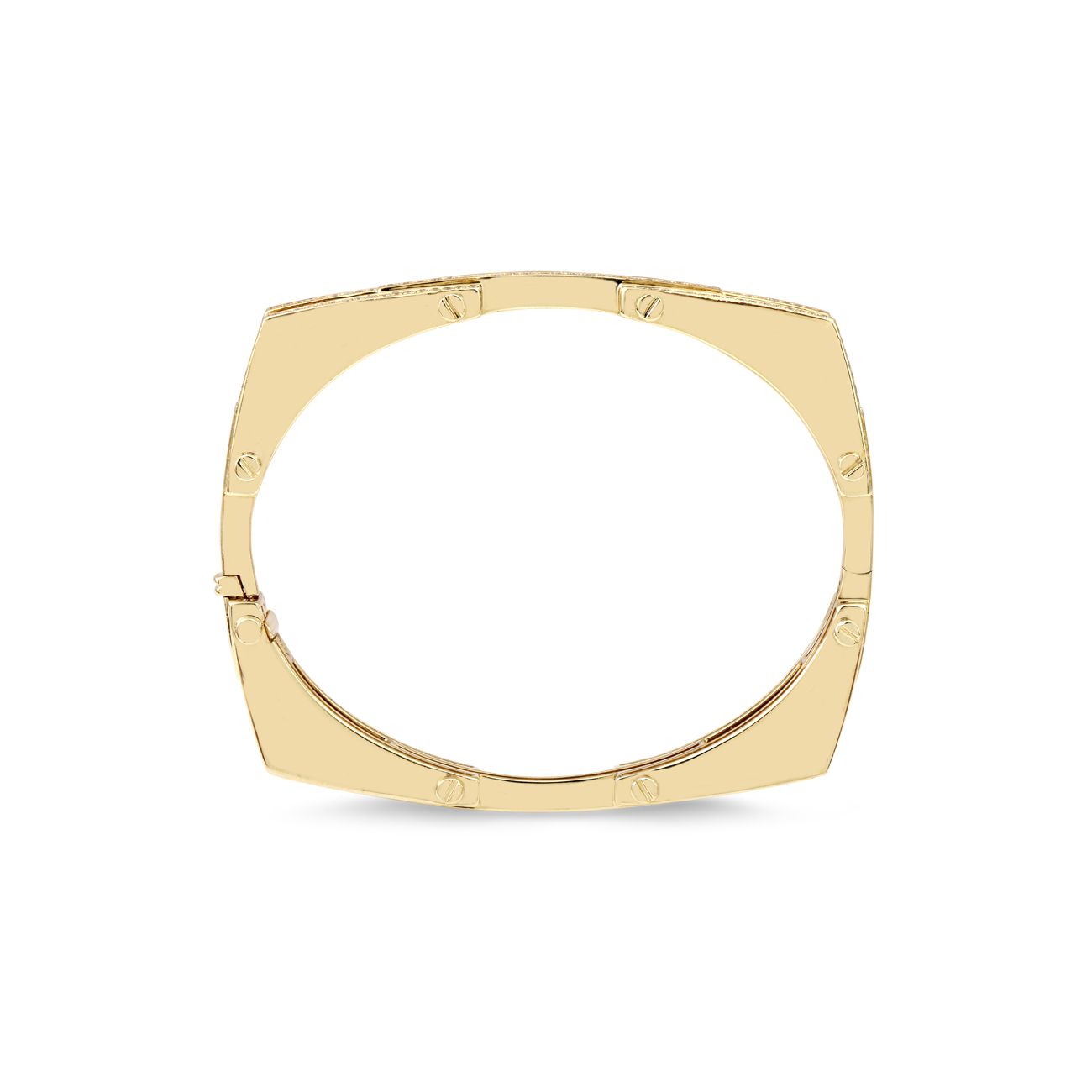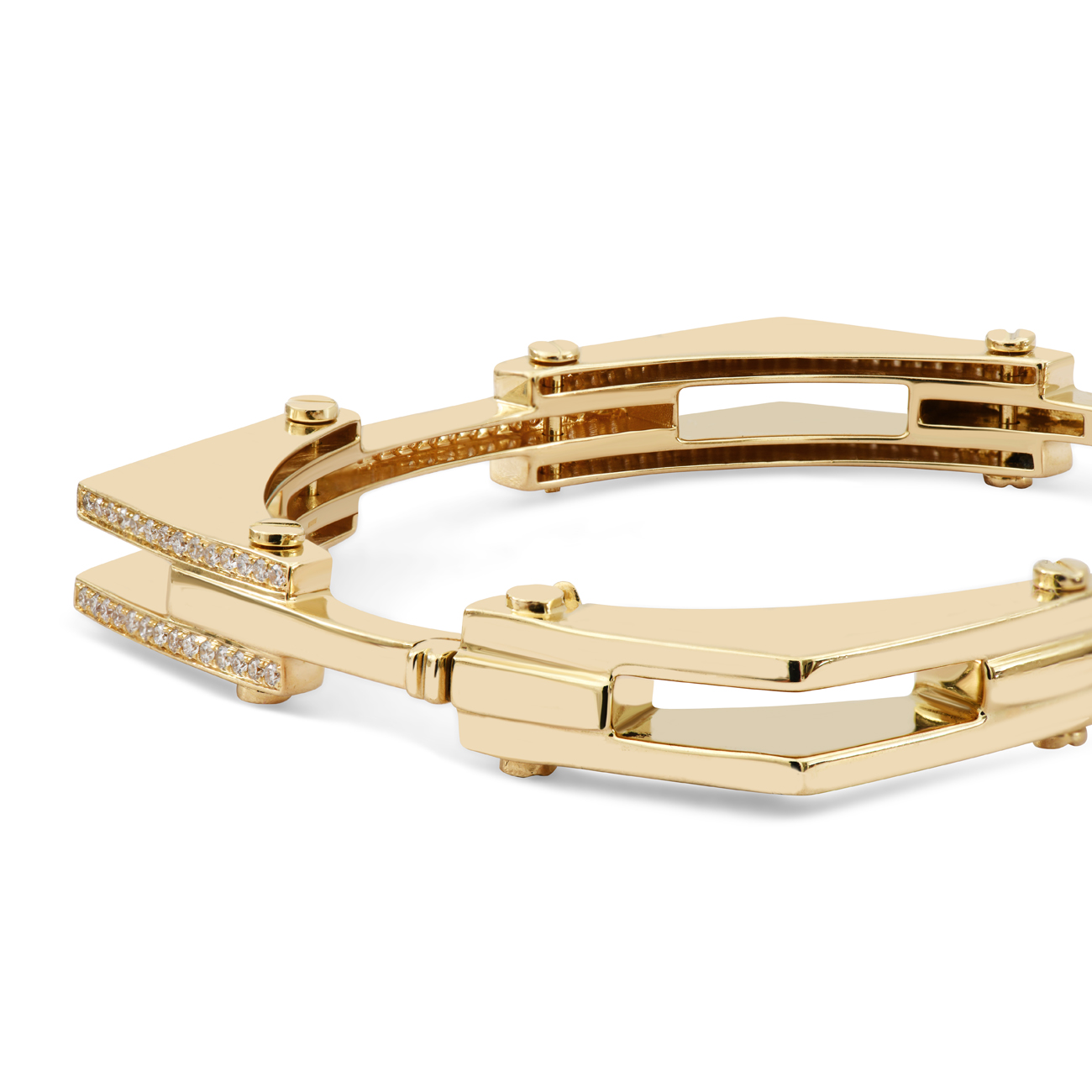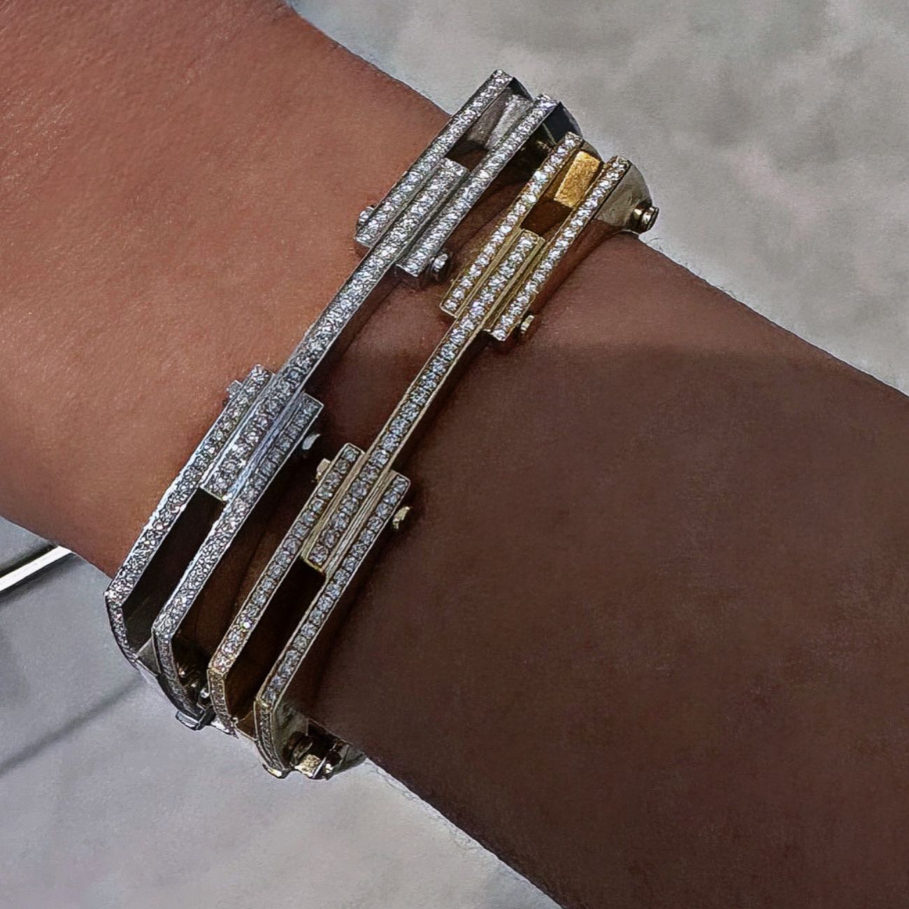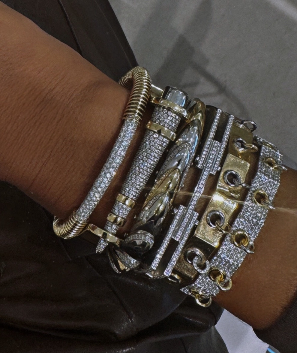 Rainbow K’s jewelry is distinguished by its modernity and originality, which is why its pieces are particularly geometrical and sculptural. The “Chrome” bangle will structurate and finish your look with a rock touch.