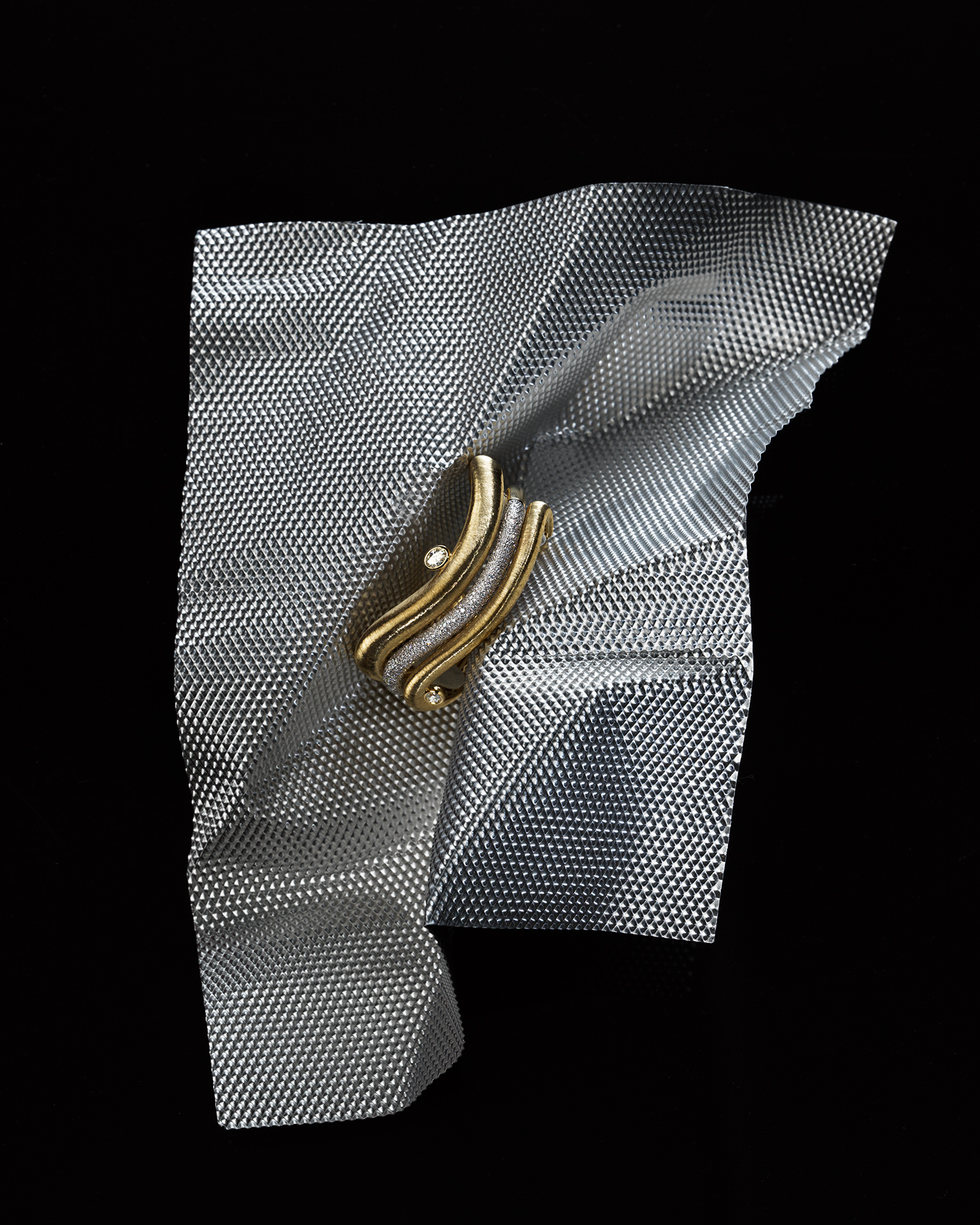 • Brushed gold, crafted according to the highest standards of high jewelry to achieve a satin finish, enhanced by a floating diamond.