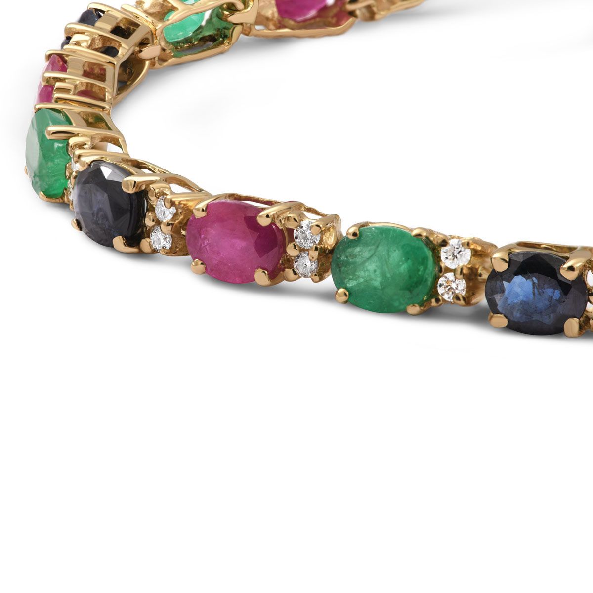 Enhanced with 14K gold, this piece represents all the codes of the house RK, both high jewelry through the white and black diamond, rubies and emeralds while remaining retro in its height.