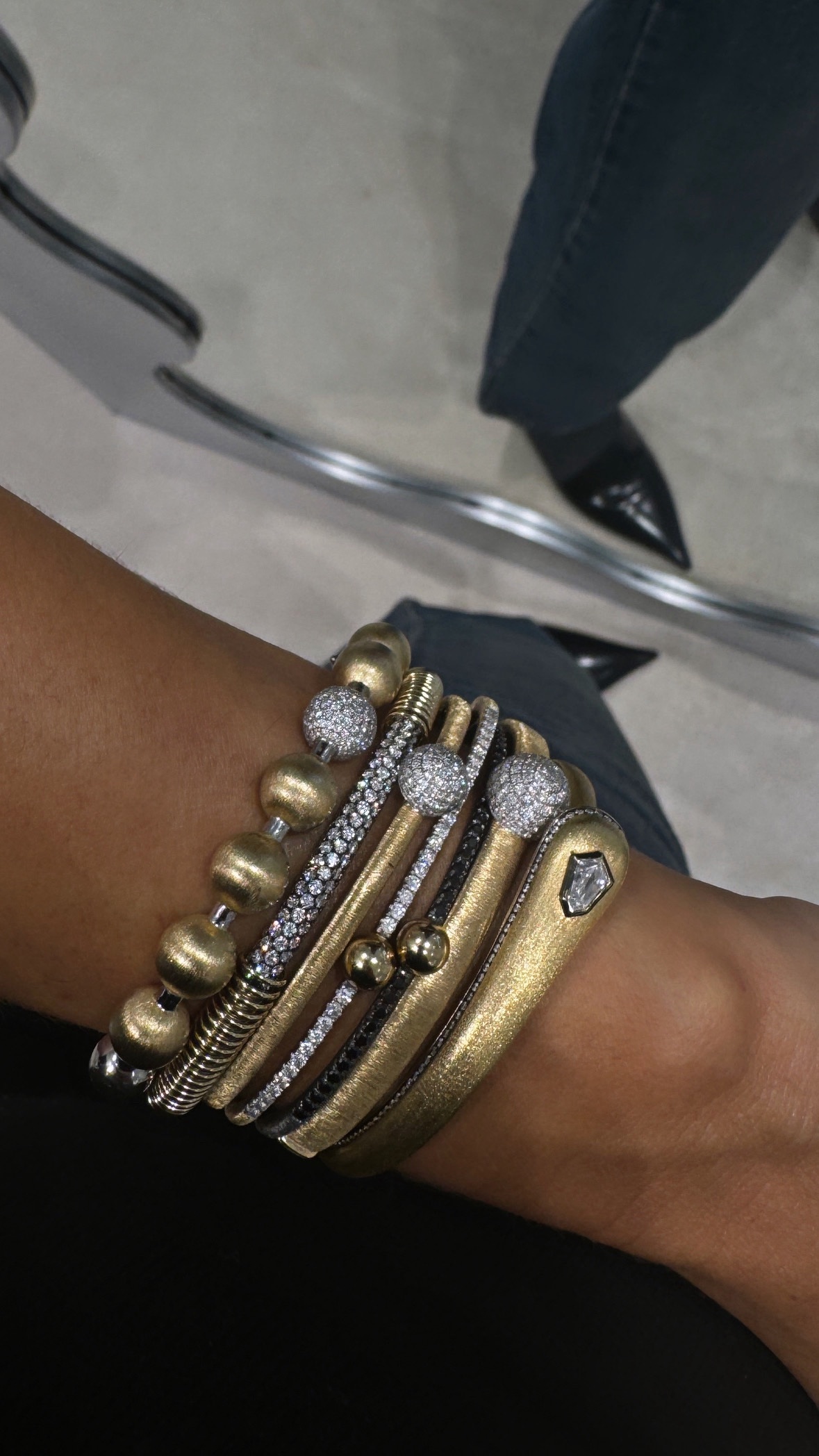 Shiny and sophisticated, this gold bracelet is the perfect accessory to add a touch of elegance to your outfit. Its sparkling diamond line adds a note of glamor and luxury. Whether for a special evening or to complete your daily look, this bracelet will bring a touch of refinement to your wrist. A true timeless gem that is sure to turn heads.
