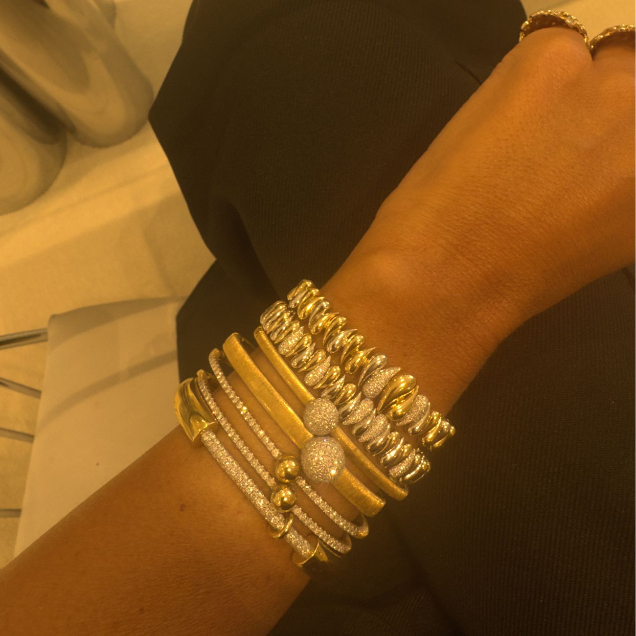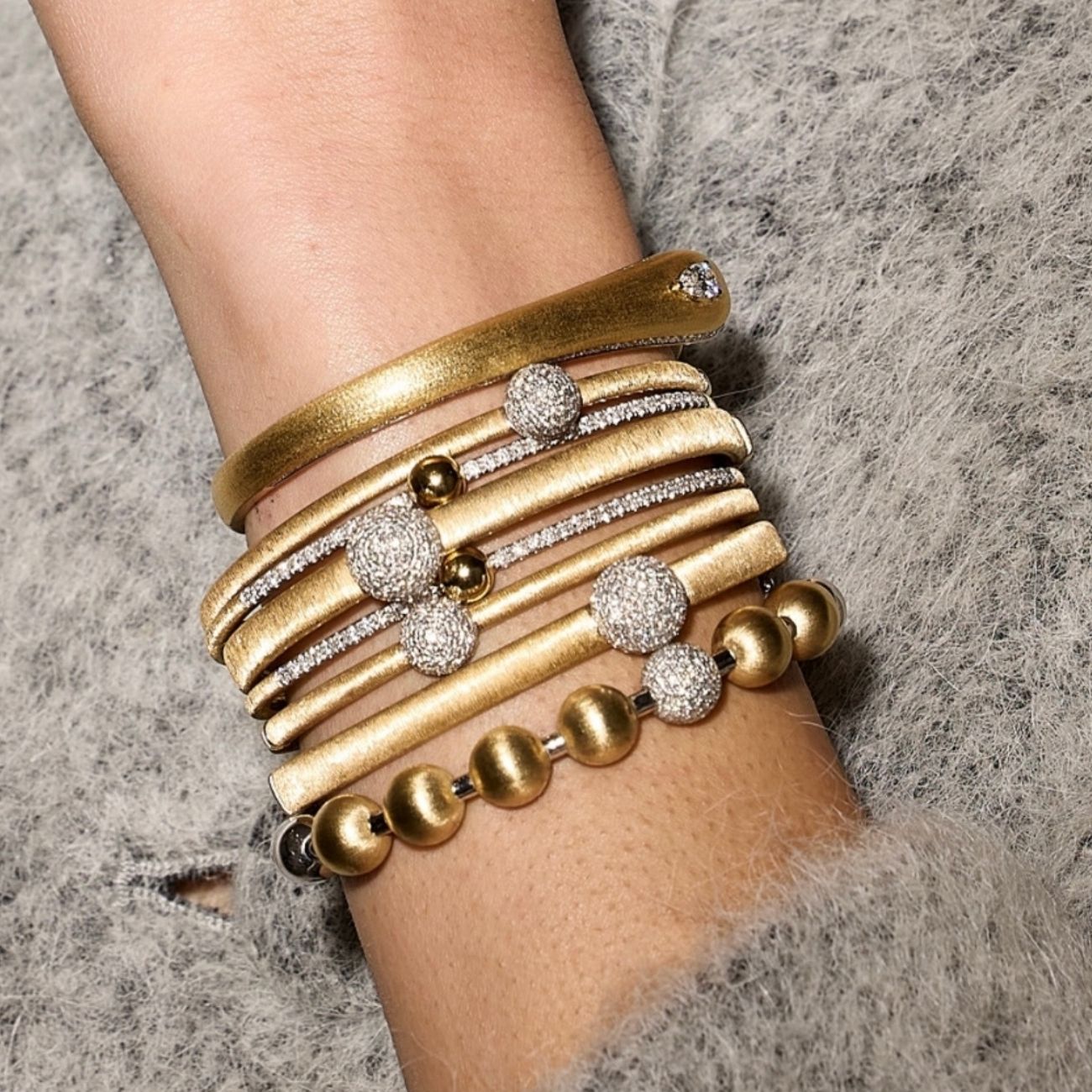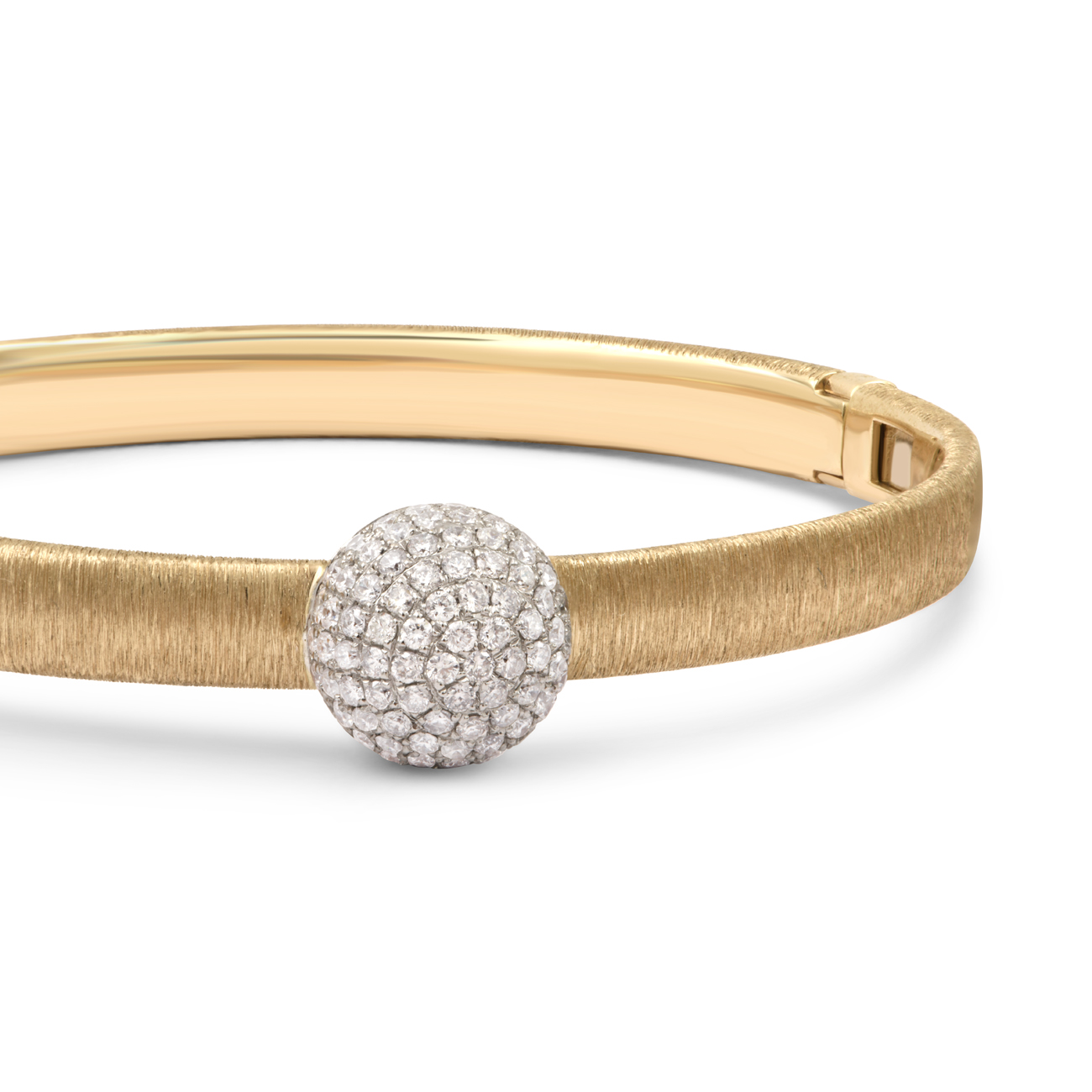 Shiny and sophisticated, this brushed gold bracelet is the perfect accessory to add a touch of elegance to your outfit. Its sparkling diamond ball adds a note of glamor and luxury. Whether for a special evening or to complete your daily look, this bracelet will bring a touch of refinement to your wrist. A true timeless gem that is sure to turn heads.