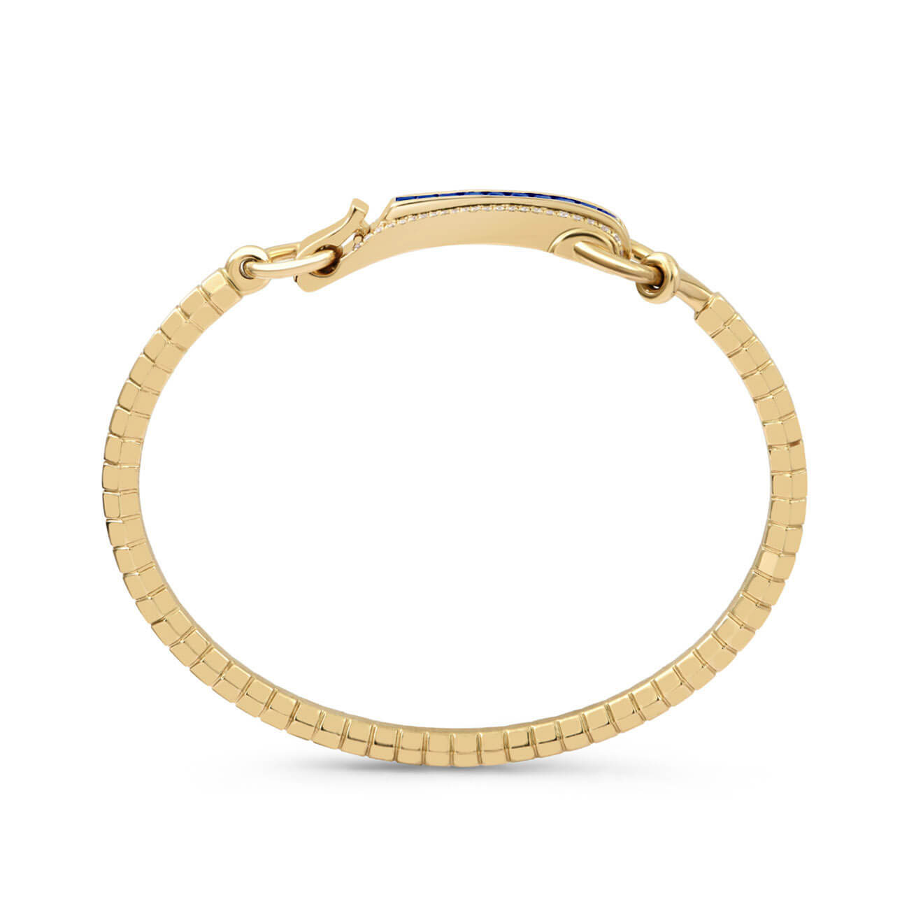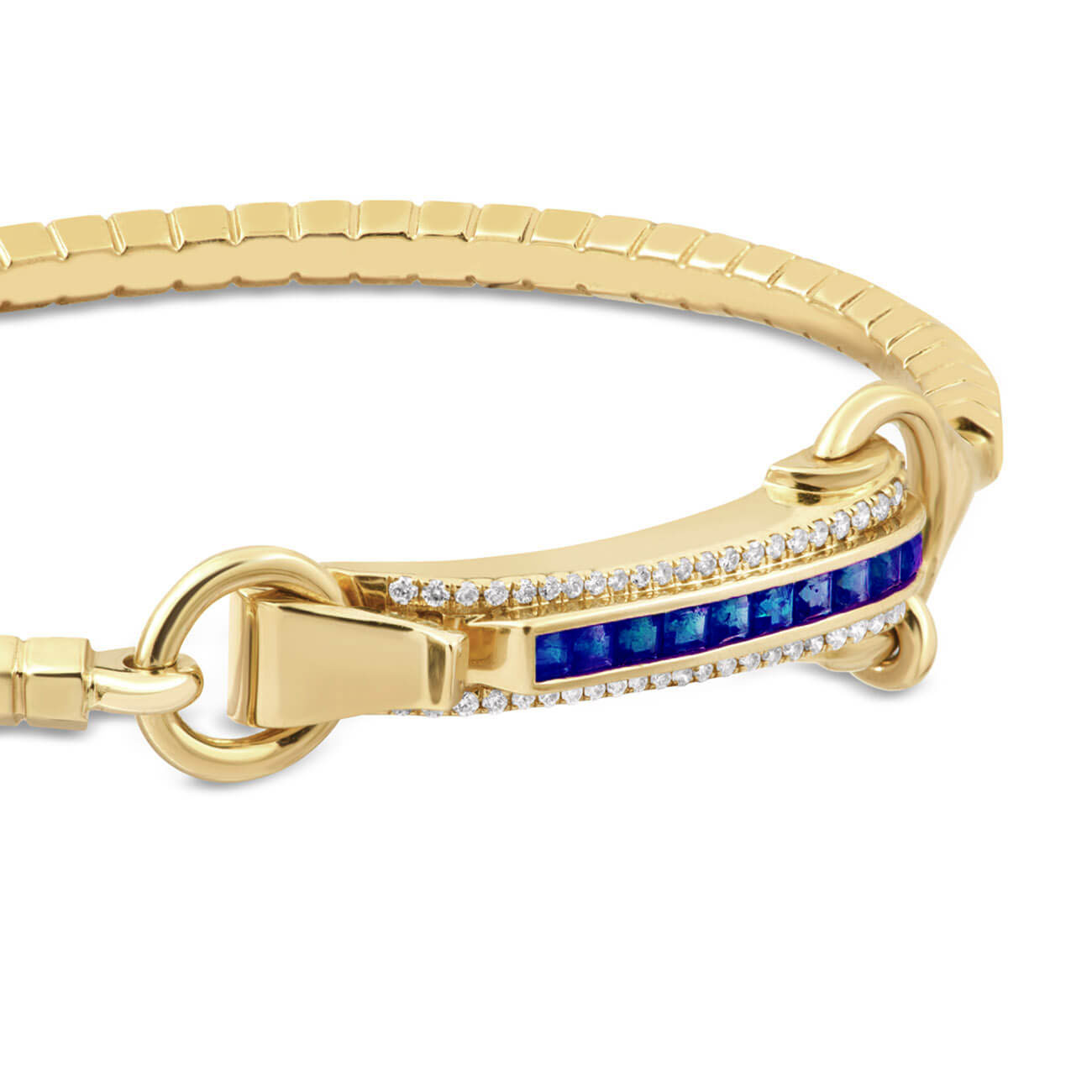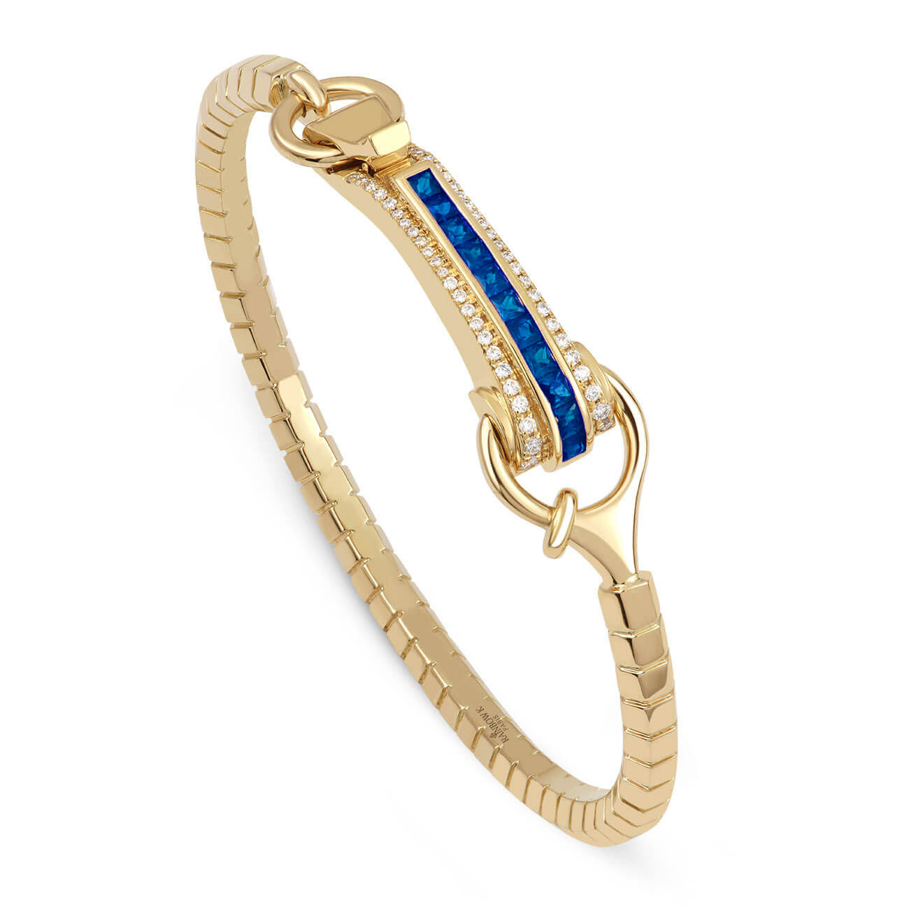 Enhanced with 18K gold, this piece represents all the codes of the house RK, both high jewelry through the diamond and sapphires while remaining retro.