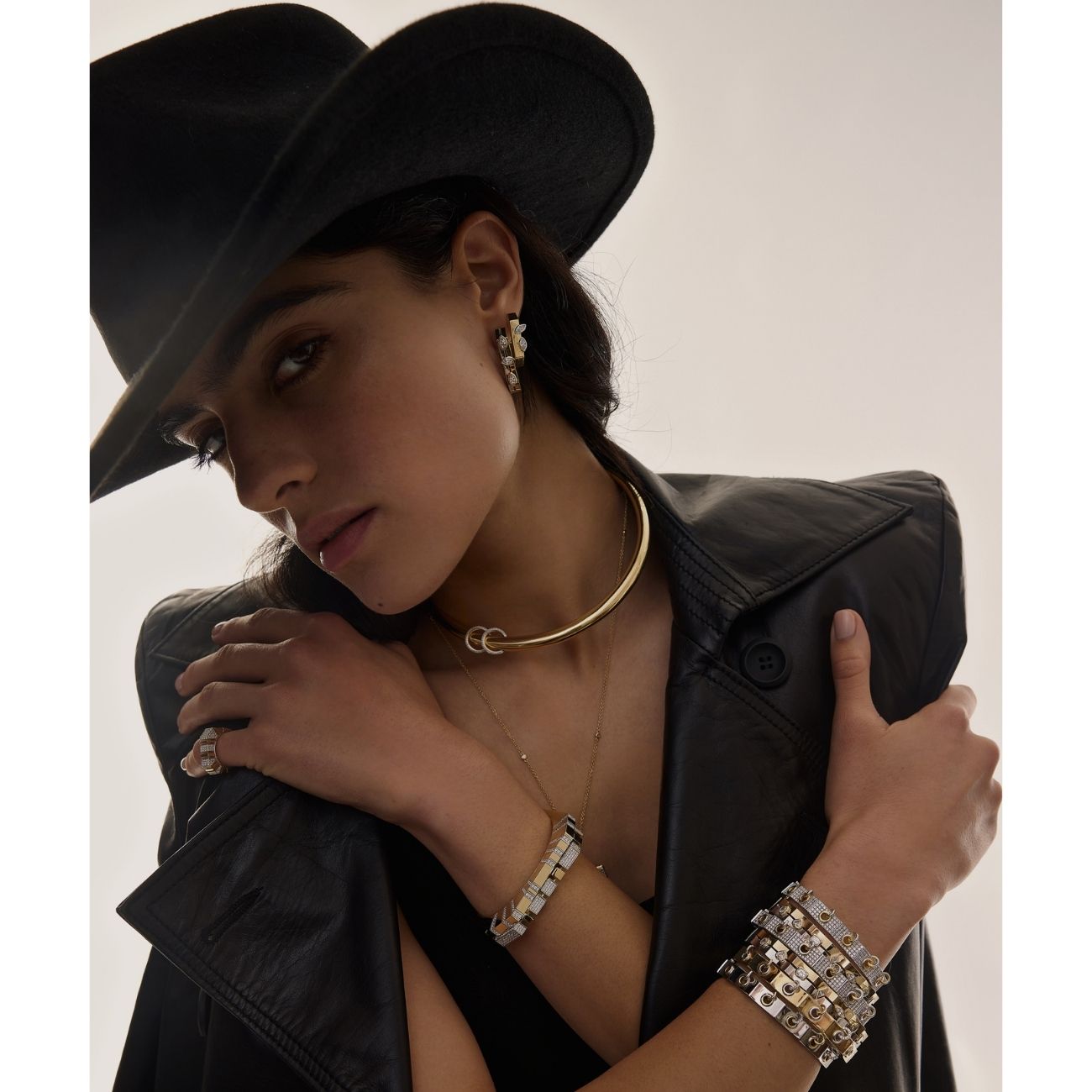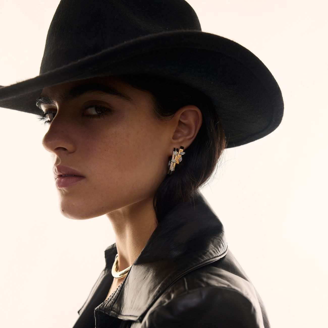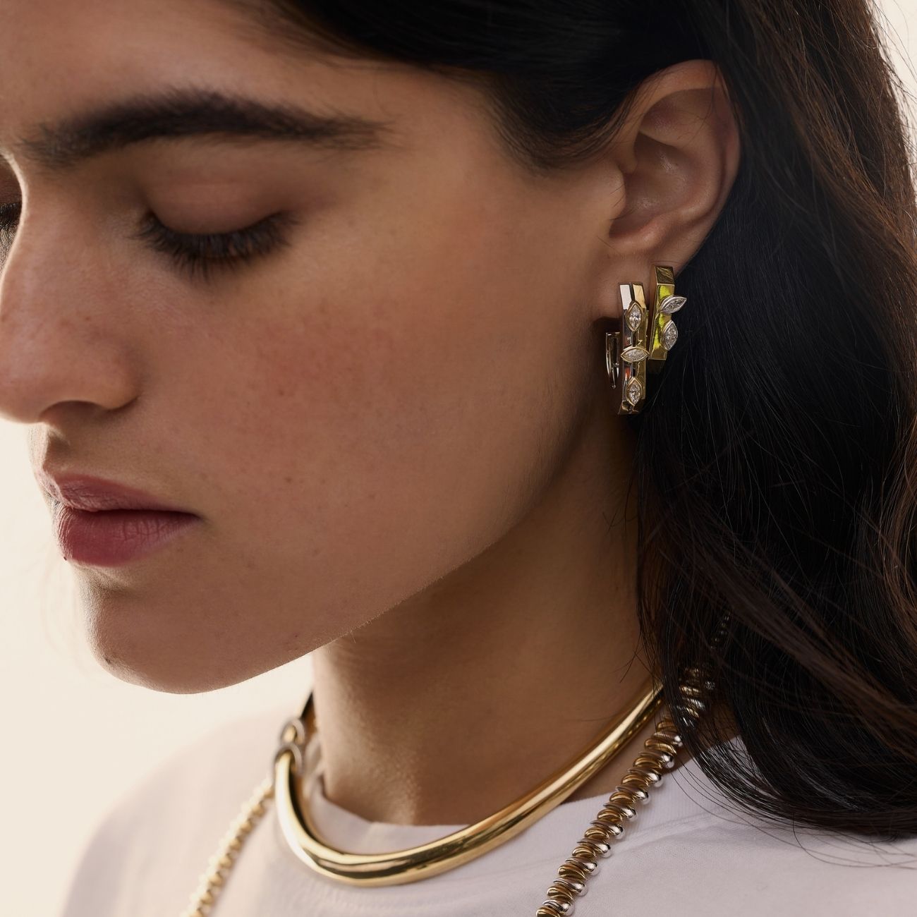 The Bold marquise large earring is a unique piece that combines elegance and boldness. With its geometric handcuff inspired by modern architecture, each detail is enhanced by sparkling marquise. This jewel embodies refinement and creativity, perfect for those who dare to stand out.