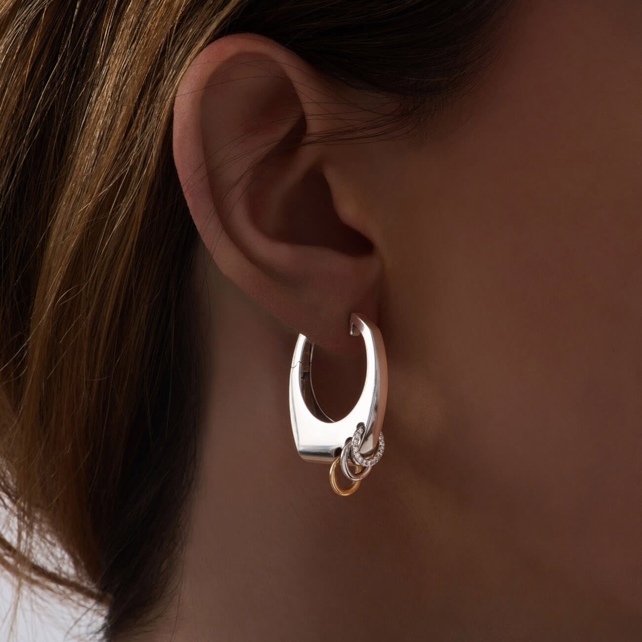 Rainbow K’s jewelry is distinguished by an Art Deco influence, which is why its pieces are particularly glamorous and sculptural. The unique Grace earring is made of shiny 14-carat gold and has an original shape. It is set with Three circles in diamonds . Take a look at the brand’s Instagram page for inspiration.