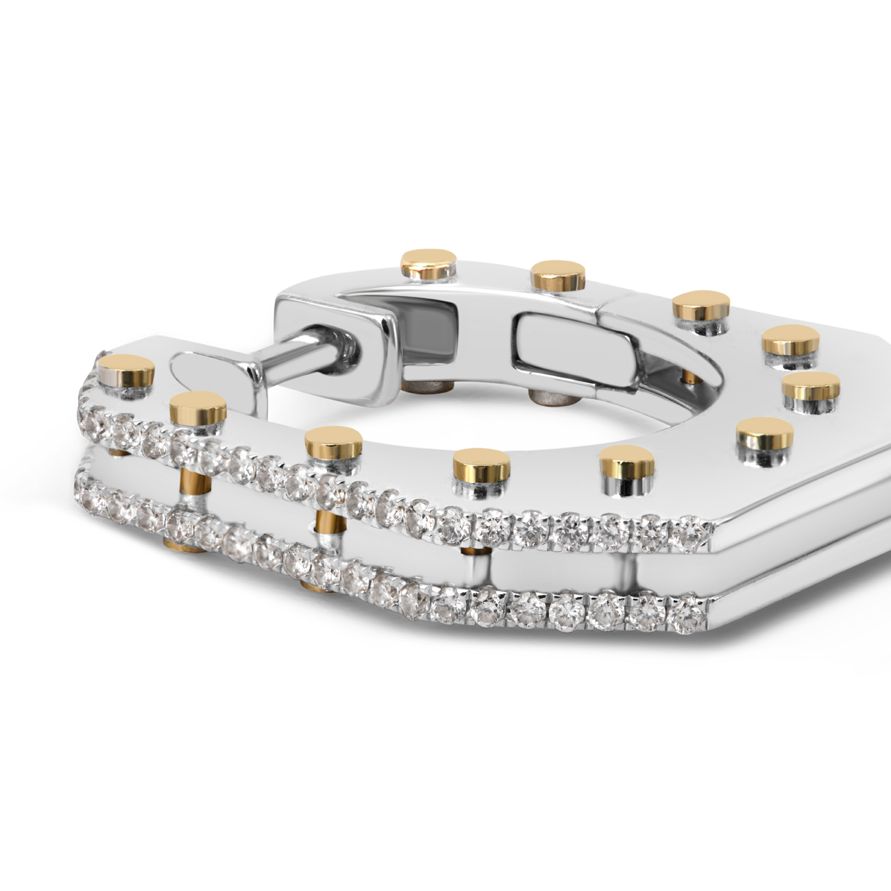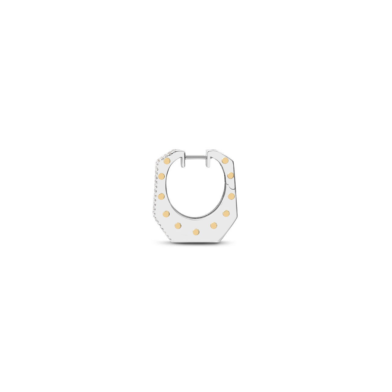 Cyborg iconic earring reflect the futuristic, cutting-edge aesthetic of cyborgs, those half- human, half-robot beings. Geometrical aspect and shape mixed to diamonds represent originality and beauty of RK