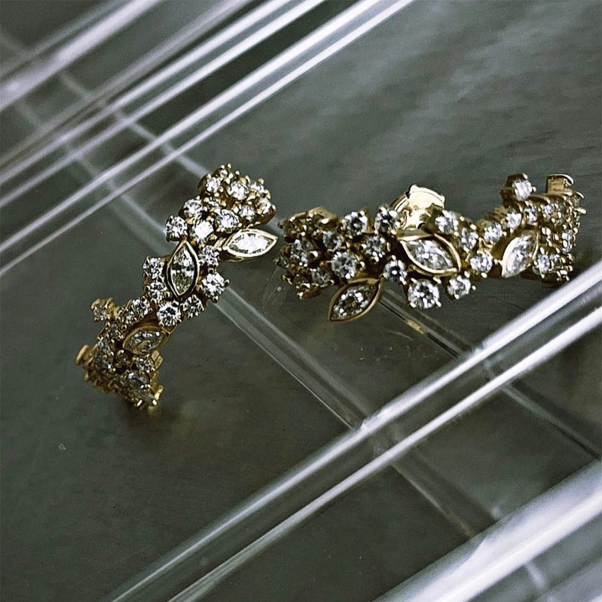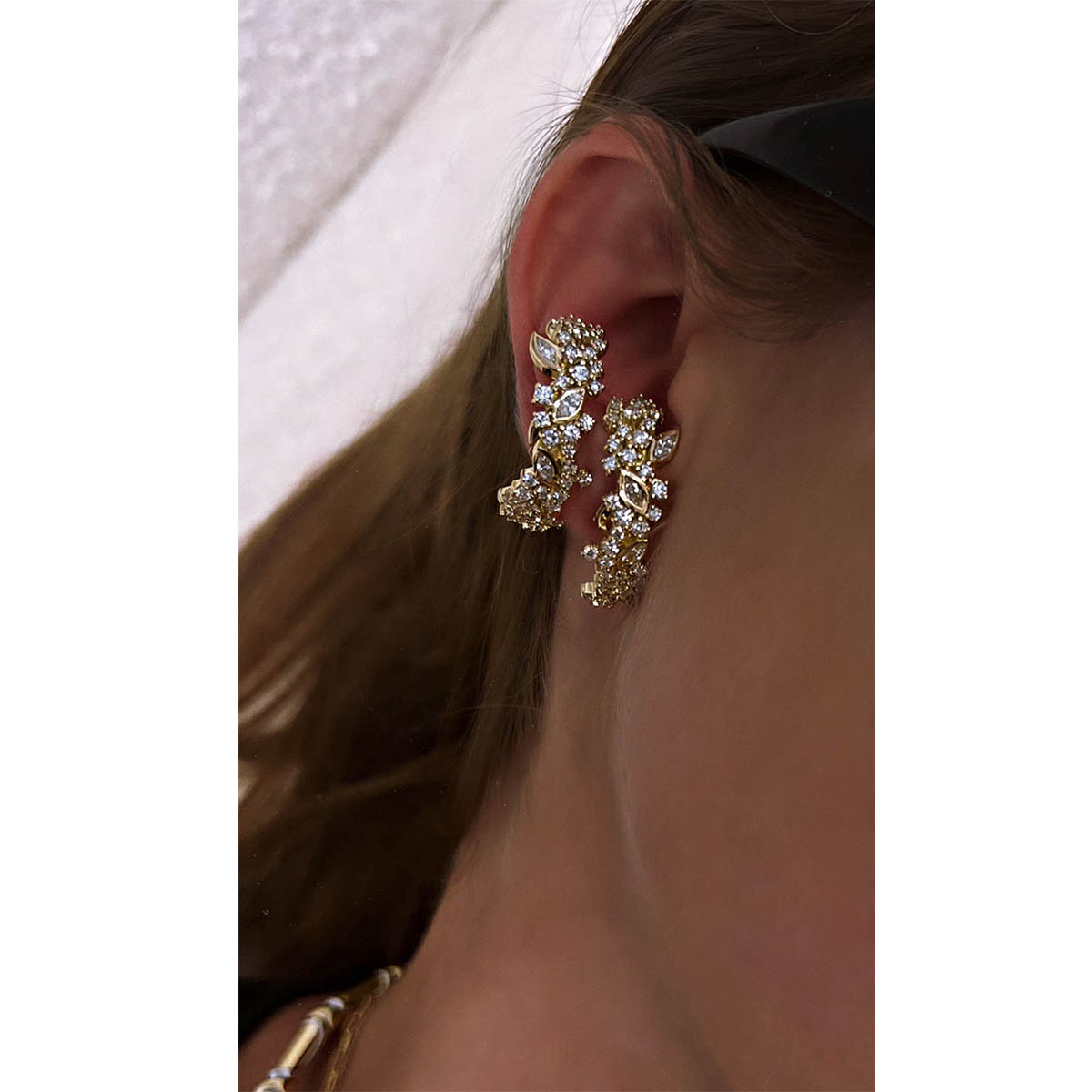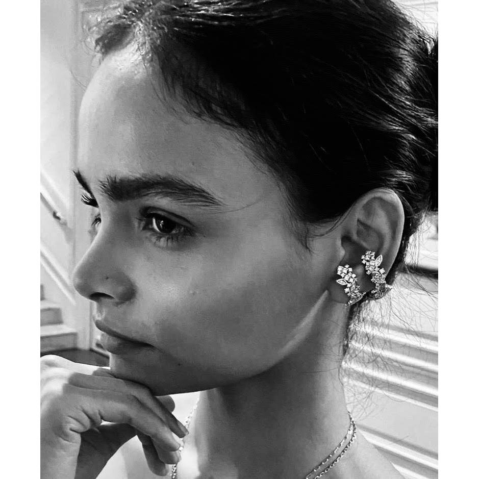 The “River” pair earring is an exceptional piece of high jewelry all adorned with marquises and destructured diamonds. This jewel will bring a touch of rock to any outfit. Can be worn on both ears for a more fashionable look.