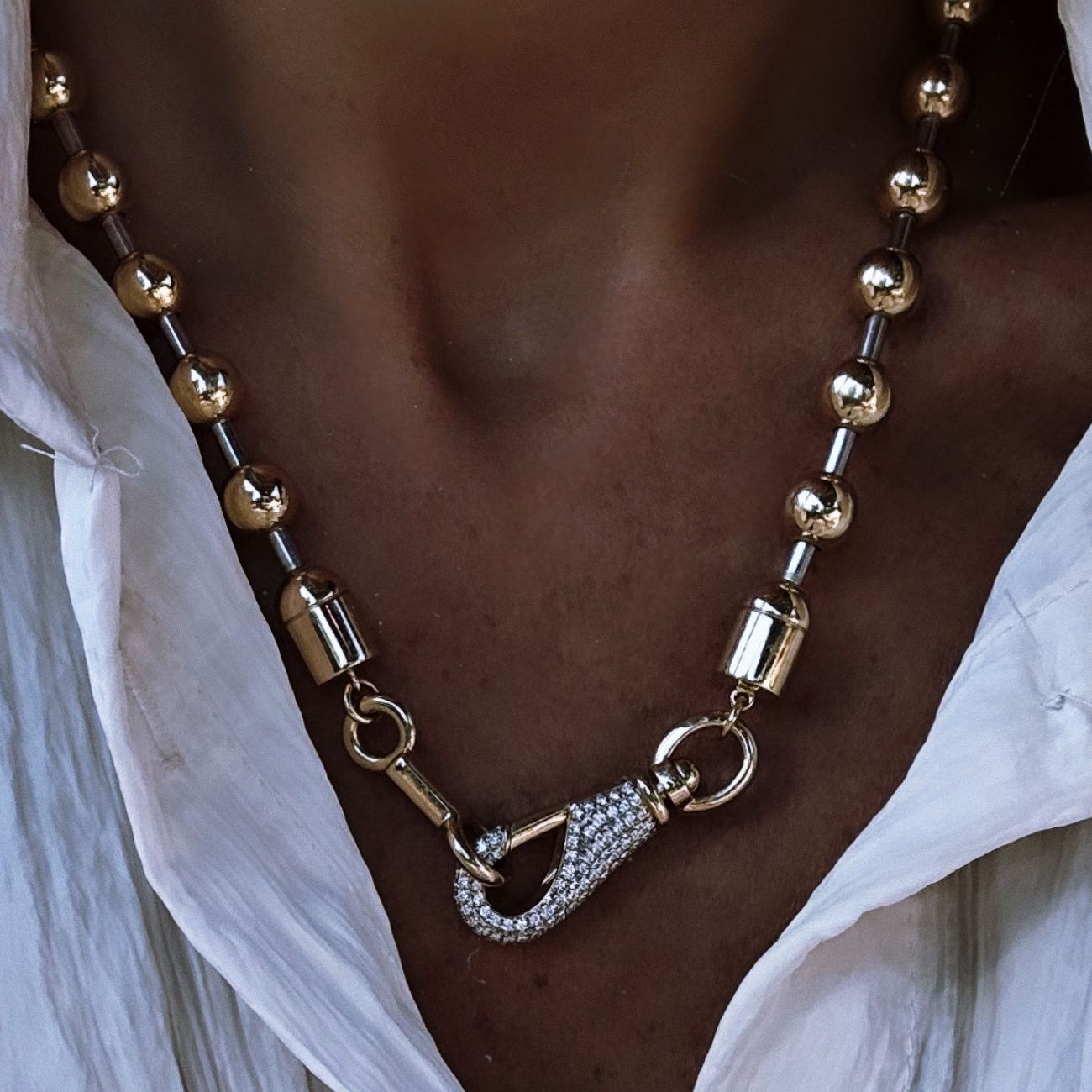 Ball necklace hook pave is a stunning fashion piece with iconic and modern design. This collection perfectly match with Piercing collection.