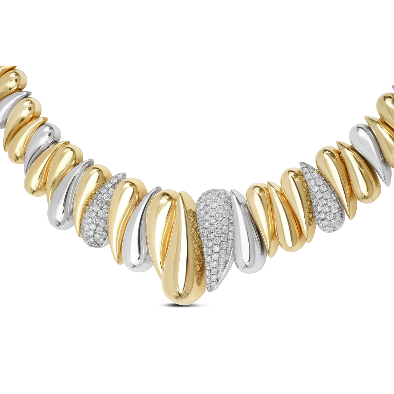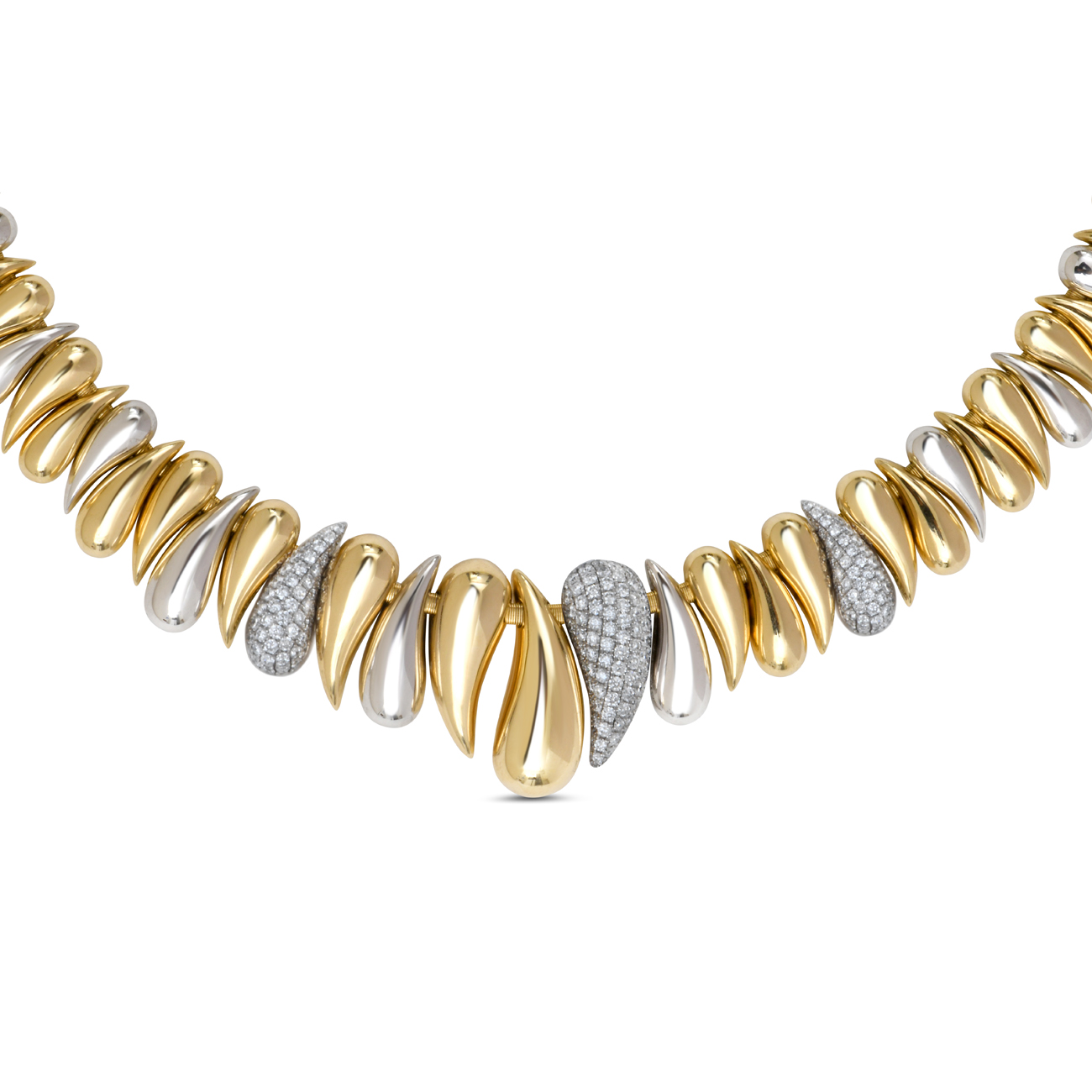 The Drop necklace highlights delicate drops of gold and diamonds, suspended upright, and upside down, creating a fascinating visual play and capturing the light with every movement. The perfect piece of jewelry to sublimate every moment.