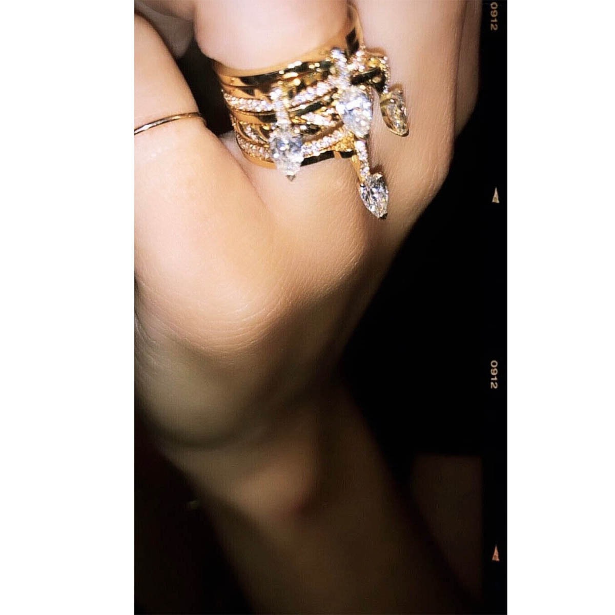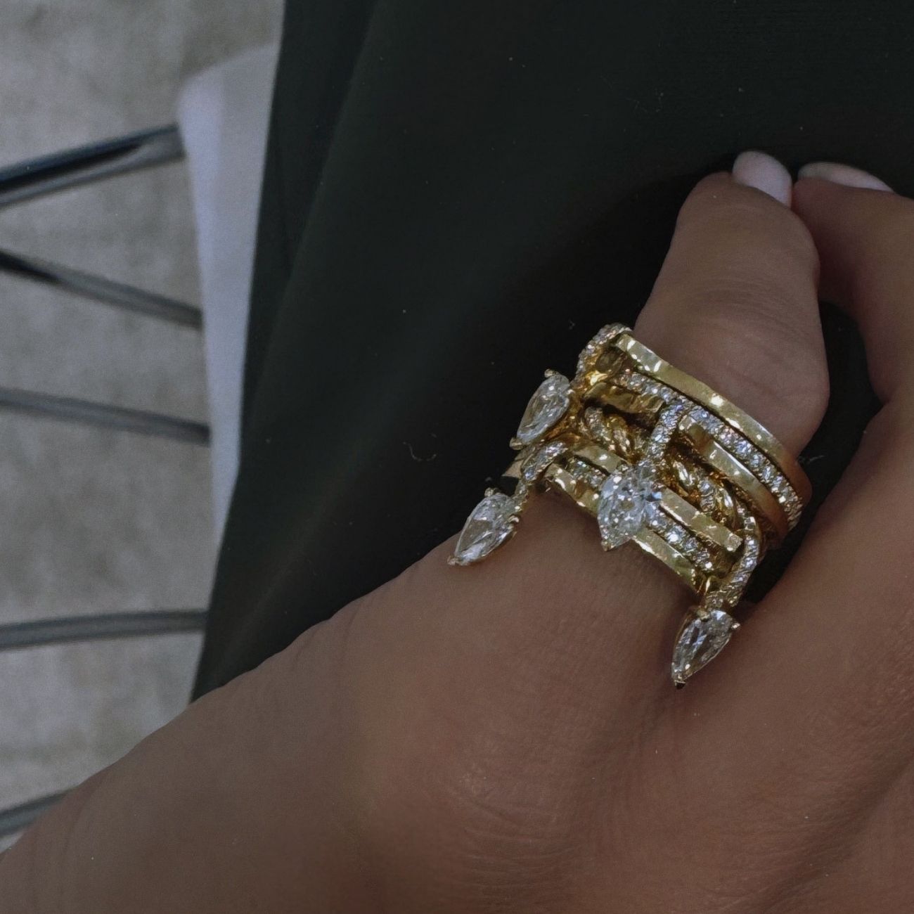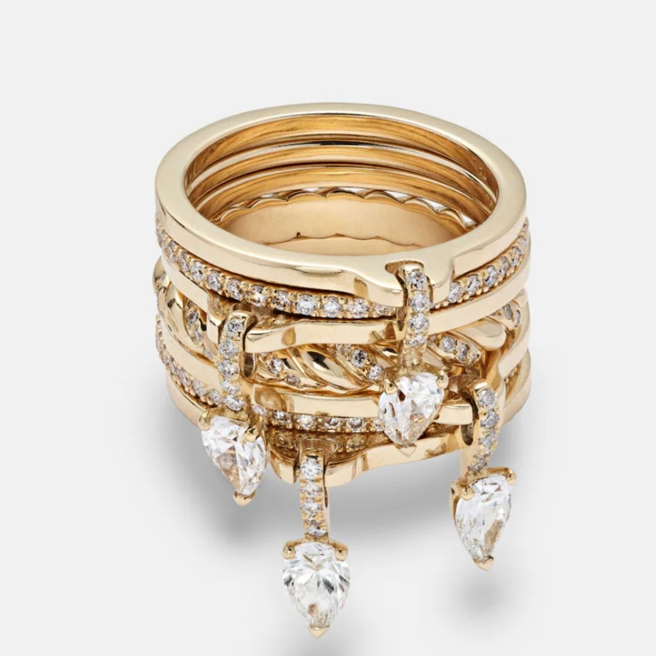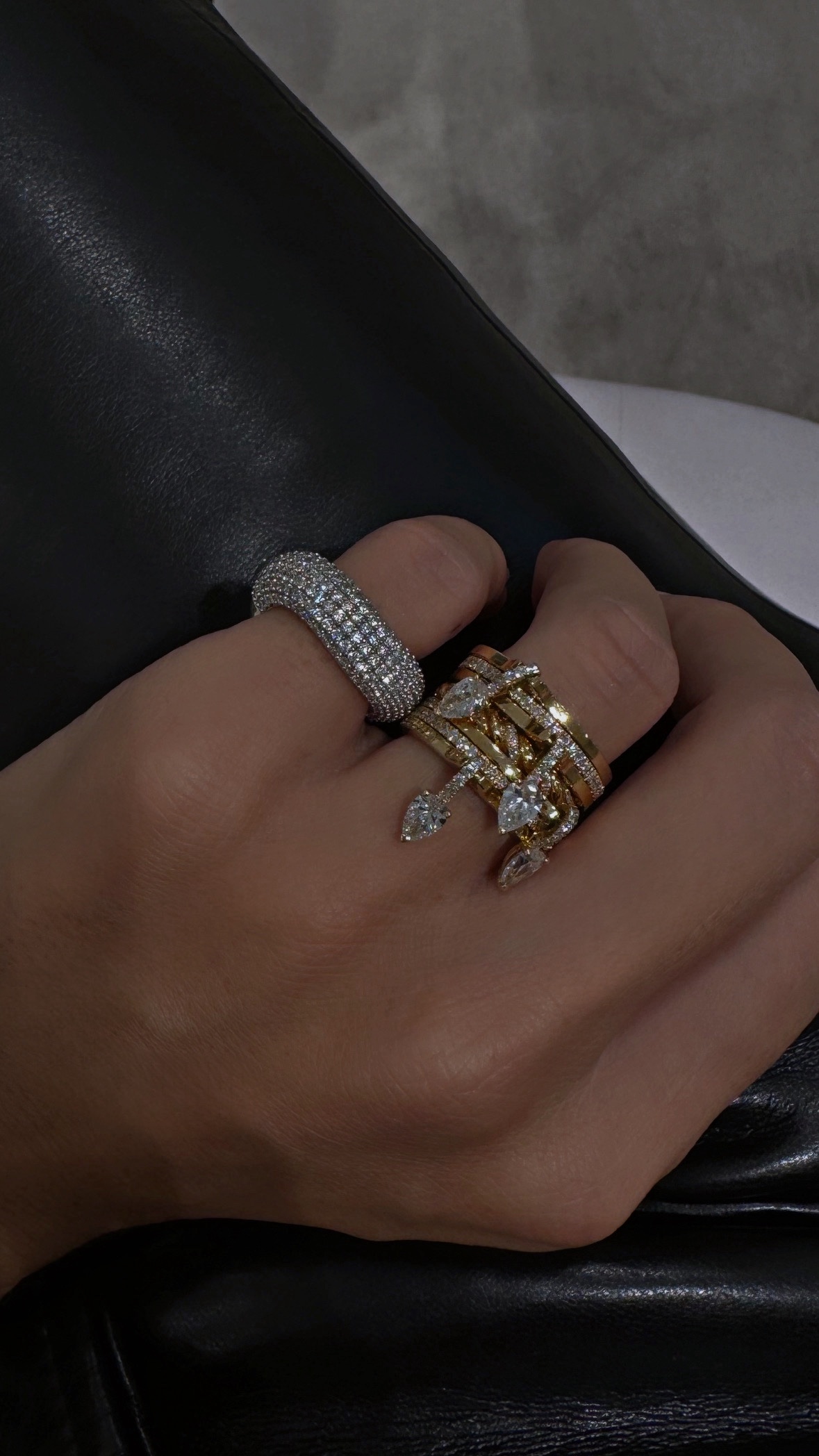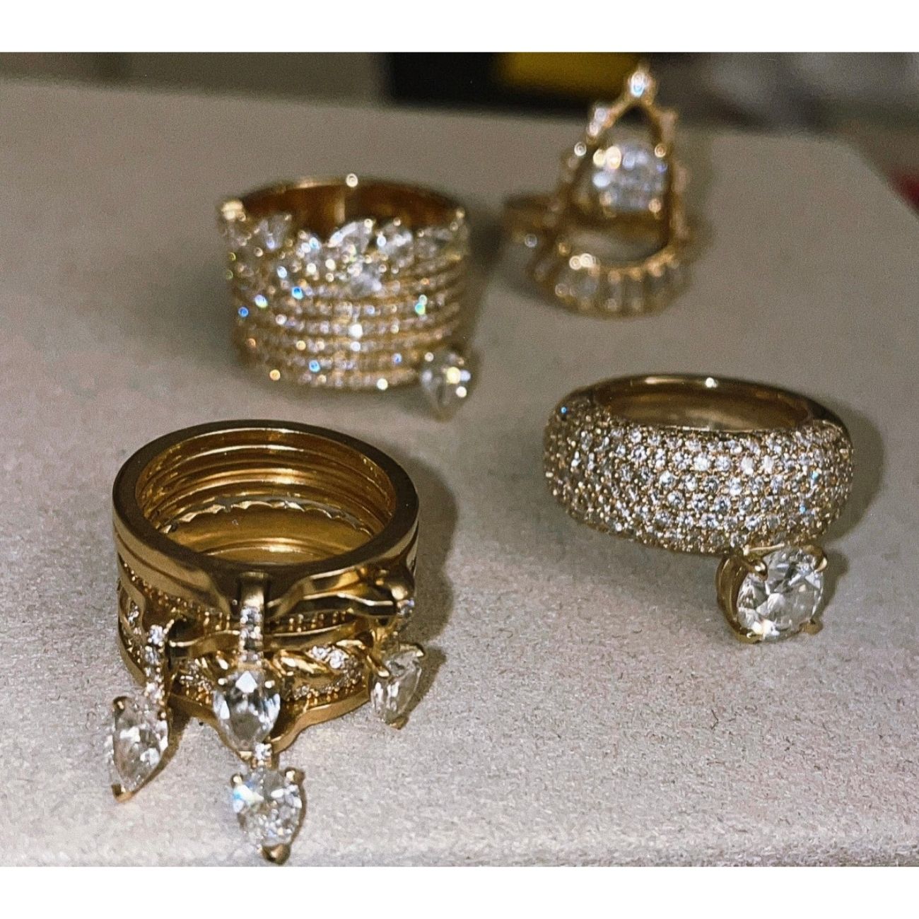4 rings in Gold with Pear diamonds floating GIA (Total 1,2cts /0,30cts each)