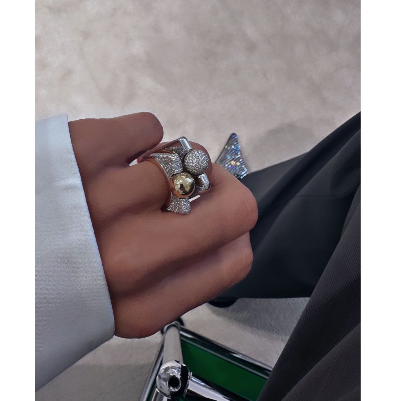 By its height and diamond paving, the Ball ring combines a touch of Rock and Elegance.