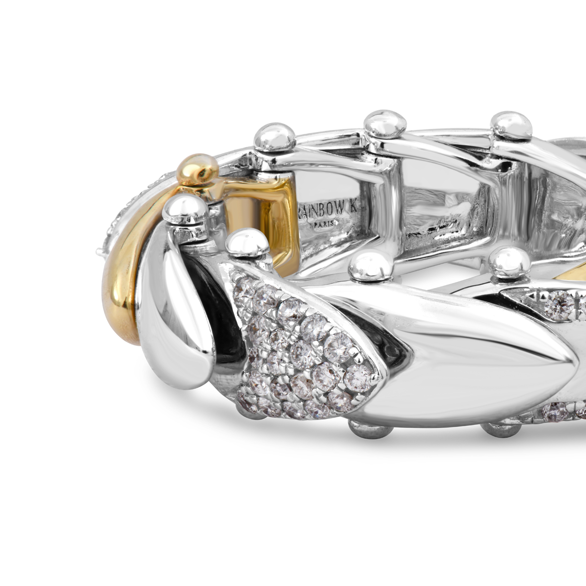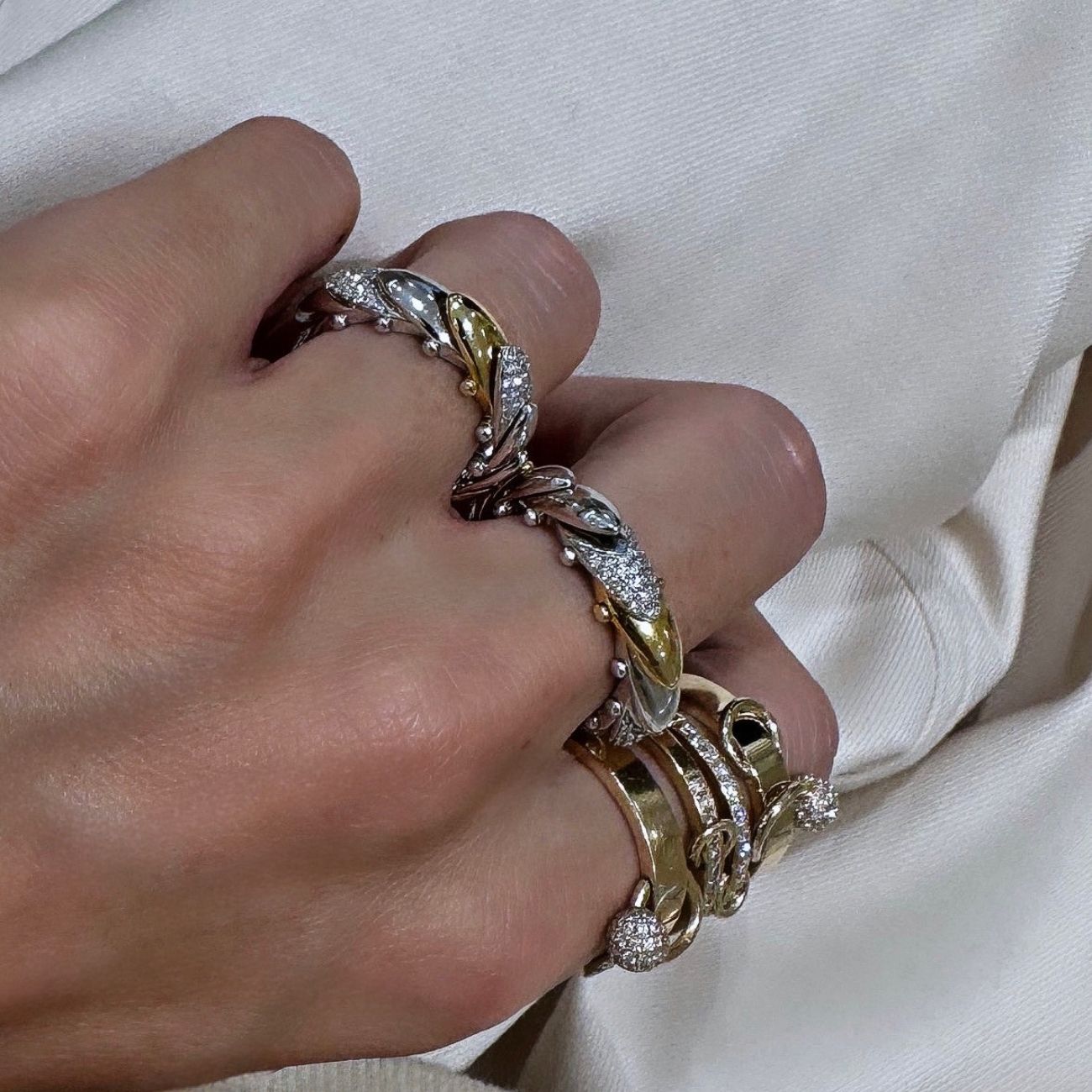Ecailles ring is an exceptional piece, it represents all the codes of RK. A piece of high jewelry, delicate in its movement, the scales articulate with each other and strong in its design. It adapts all looks from classic to the most flambloyant.