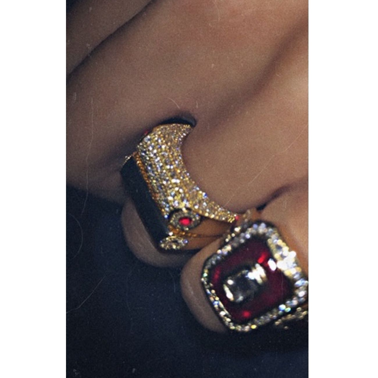 Rainbow K’s opulent designs, such as the Grace ring, fuse retro flair with contemporary glamour. This style is made from 14K gold with dazzling pavé-set diamonds and accented with two point-cut Precious Stone .
