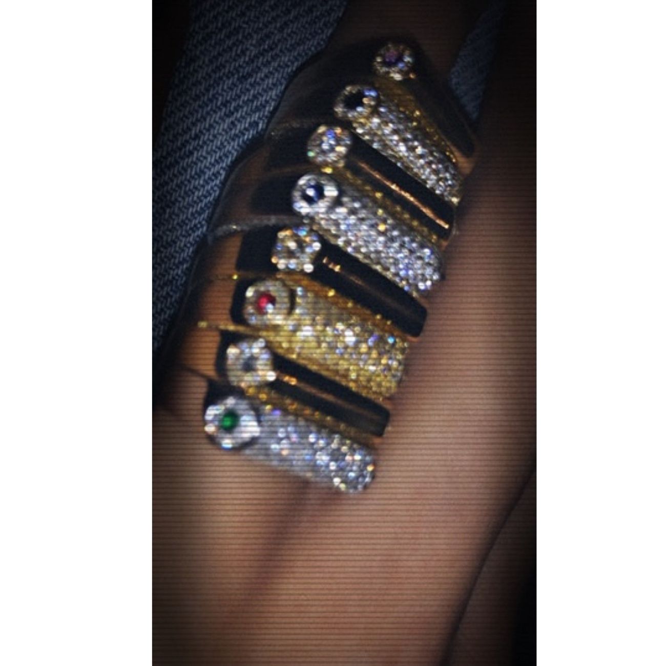 Black diamonds, Emeralds, Ruby, Sapphires, White diamonds