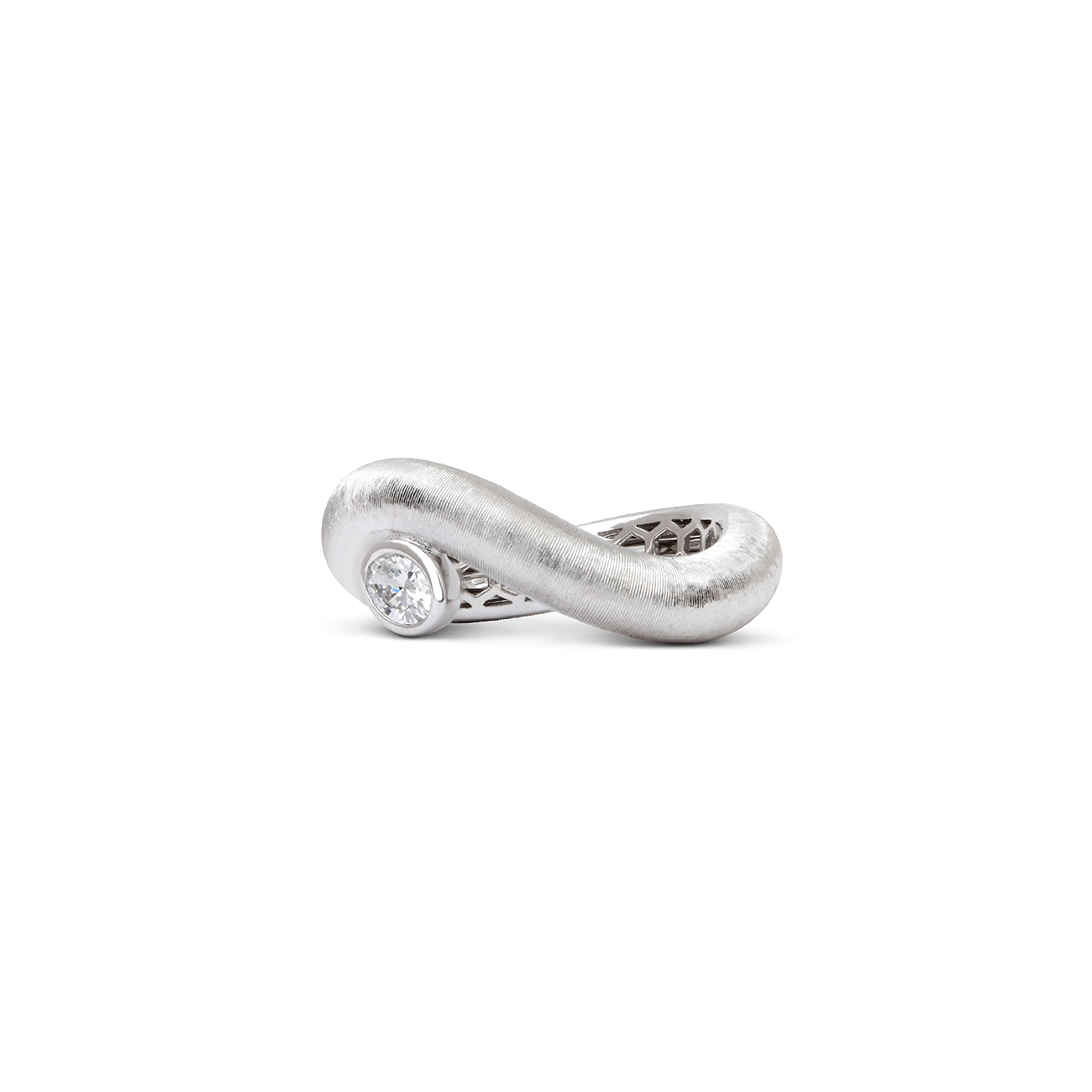 The Illusion ring explores the power of couture stacking: sculptural volumes, contrasting textures, and a mastery of light that creates a dialogue between shadow and brilliance.