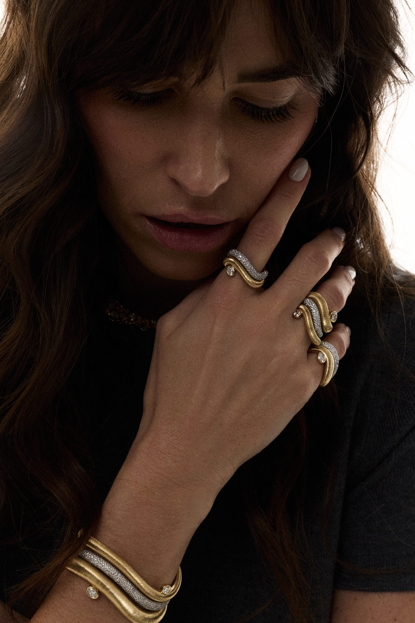 • Brushed gold, crafted according to the highest standards of high jewelry to achieve a satin finish, enhanced by a floating diamond.