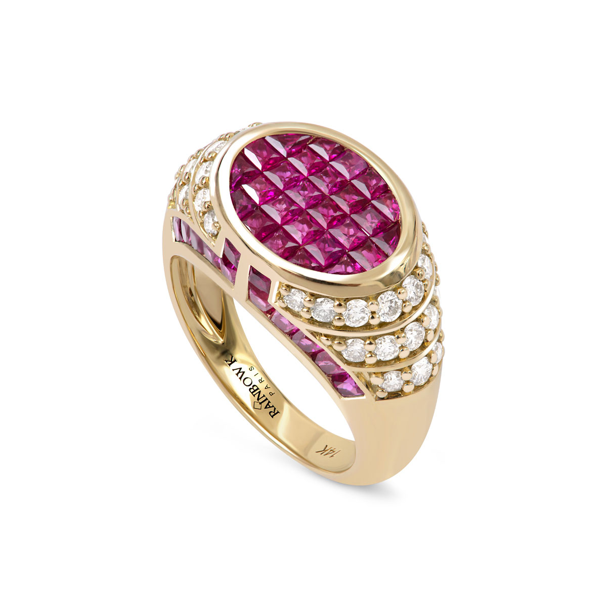 “Lady” ring for all ladies, classical, rock, sophisticated… You are this woman that can wear only this piece and look wonderful. It represents all the codes of the house RK, both high jewelry through the diamond and ruby while remaining retro in its height.