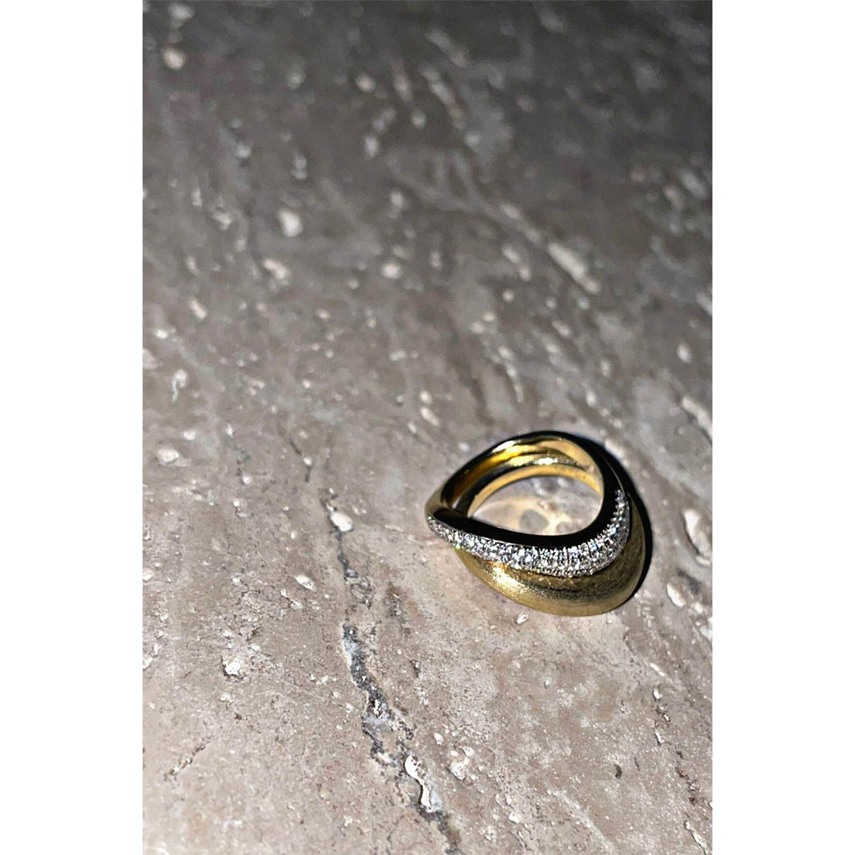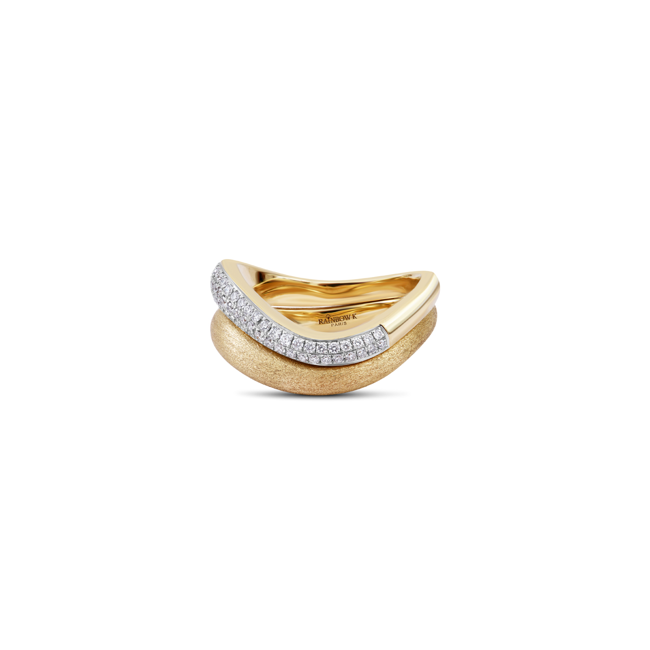 The ring Wave is unique with its mix of brushed gold and diamond pavement very easy to accumulate with other jewelry. We like its wave side, very easy to wear in everyday life, and we love to wear it on the little finger with the illusion ring.